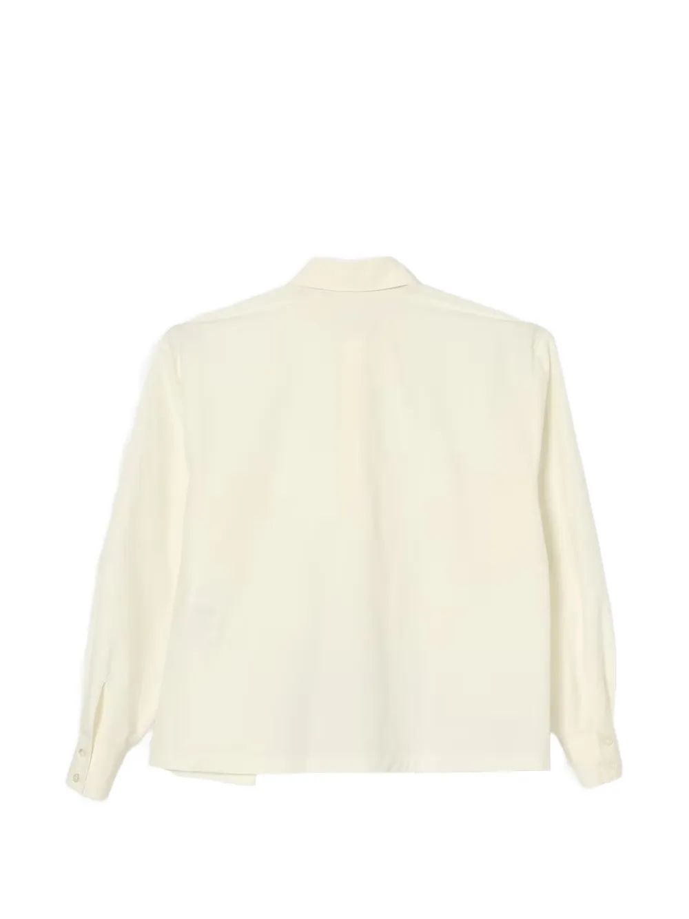 Кремово-белый цвет, длинные рукава, застегивается на пуговицы, отложной воротник, эластичный подол, логотип