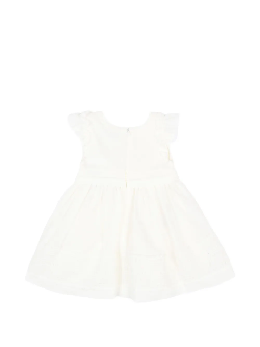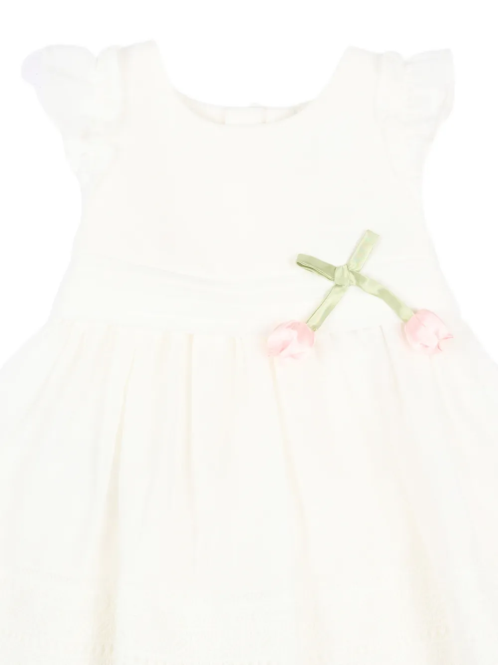 Экрю, цветочные детали, рукава с рюшами, круглый вырез, застежка-молния, вышитый низ