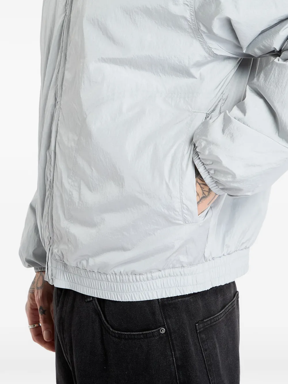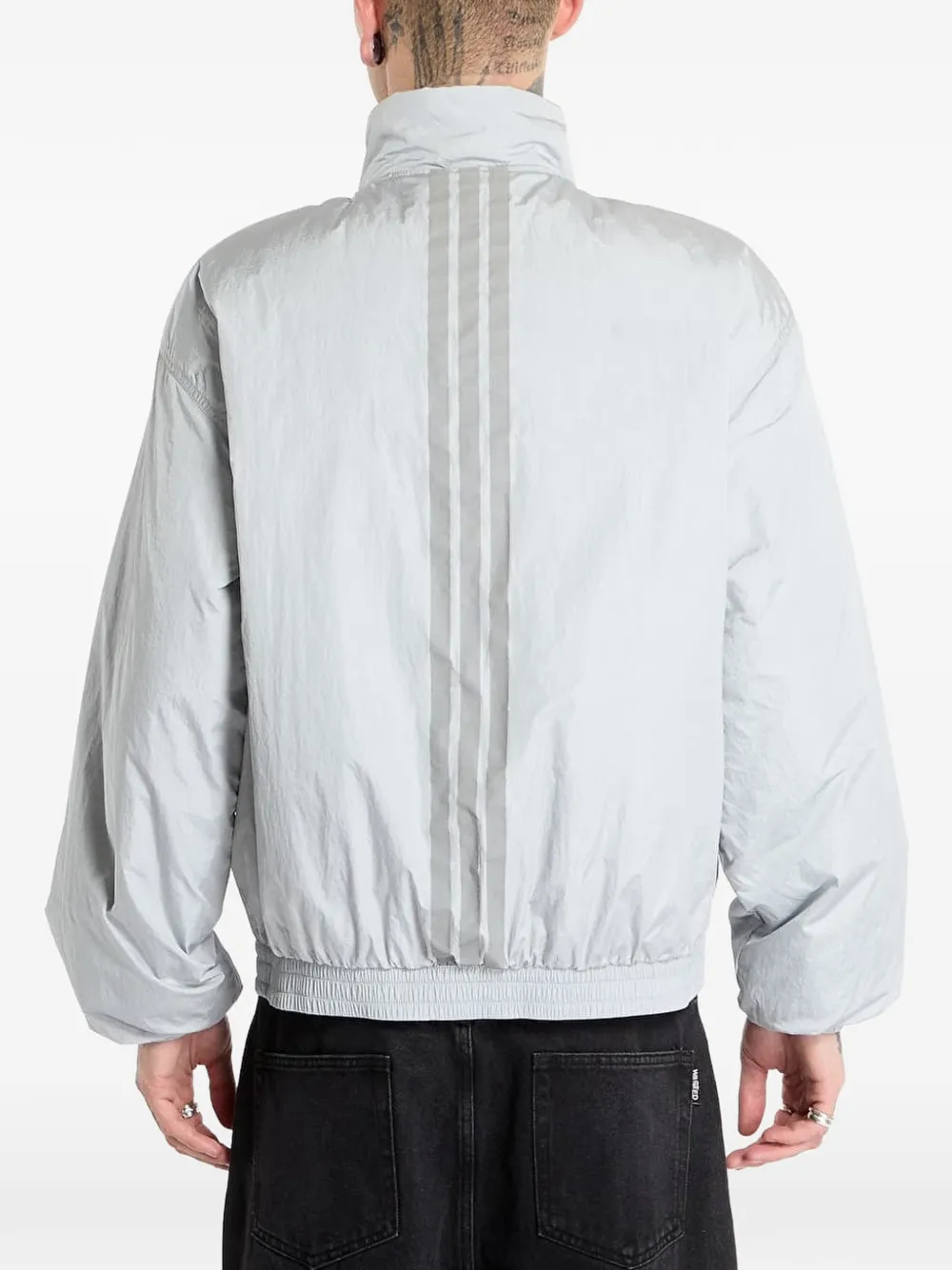 Серый с тремя полосками, застежкой-молнией и эластичным подолом