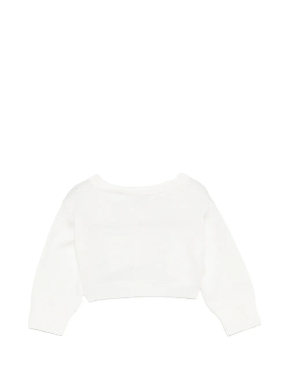 Кремовый джемпер с круглым вырезом, длинными рукавами, застежкой на пуговицы спереди и украшением стразами
