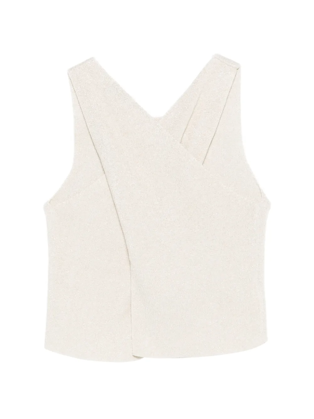 Бежевый жилет с V-образным вырезом, перекрещенной спинкой и вышитым логотипом