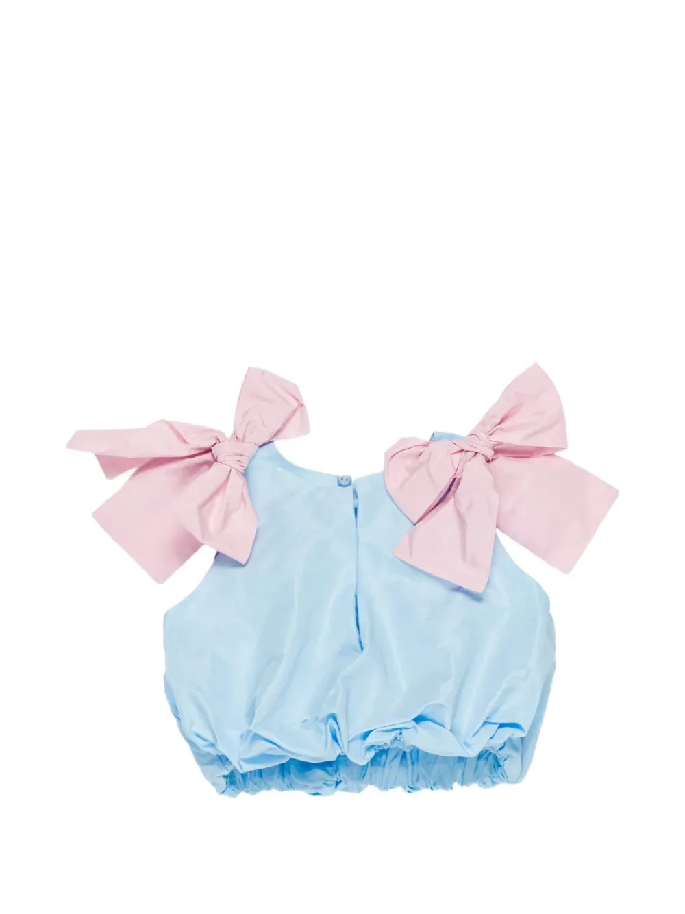 Светло-голубое платье без рукавов с бантом и сборками