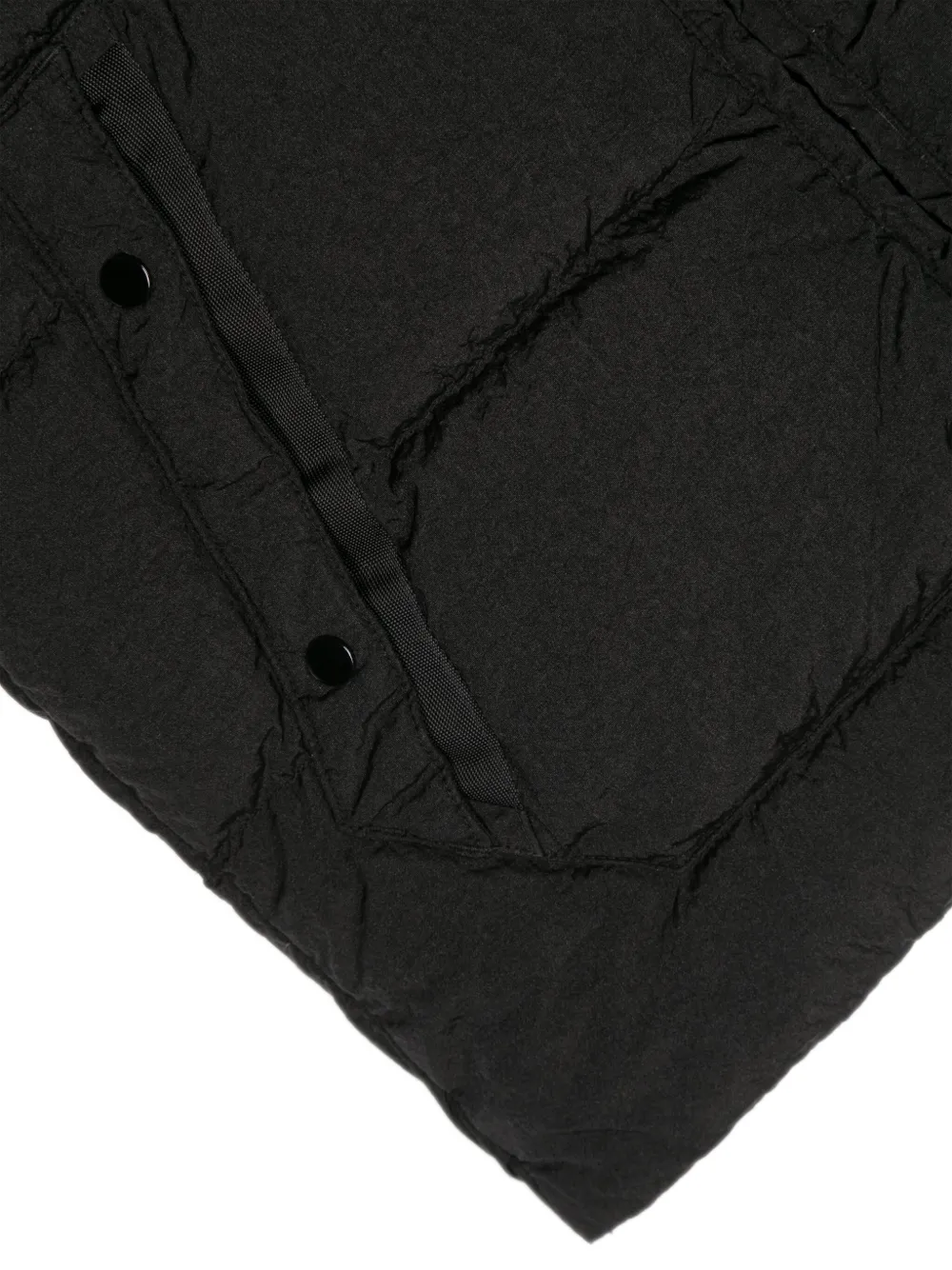 Черный, дутый материал, декоративная линза, нашивка с логотипом спереди, два передних кармана, застежка на молнии спереди, высокий воротник, без рукавов и прямой подол. C.P. Company рекомендуют снимать все отстегивающиеся аксессуары перед стиркой.