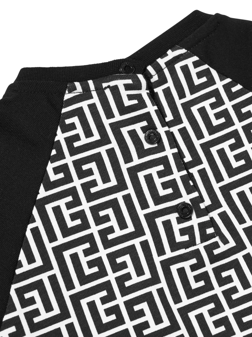 Черно-белый, короткие рукава, круглый вырез, застежка на кнопки сзади