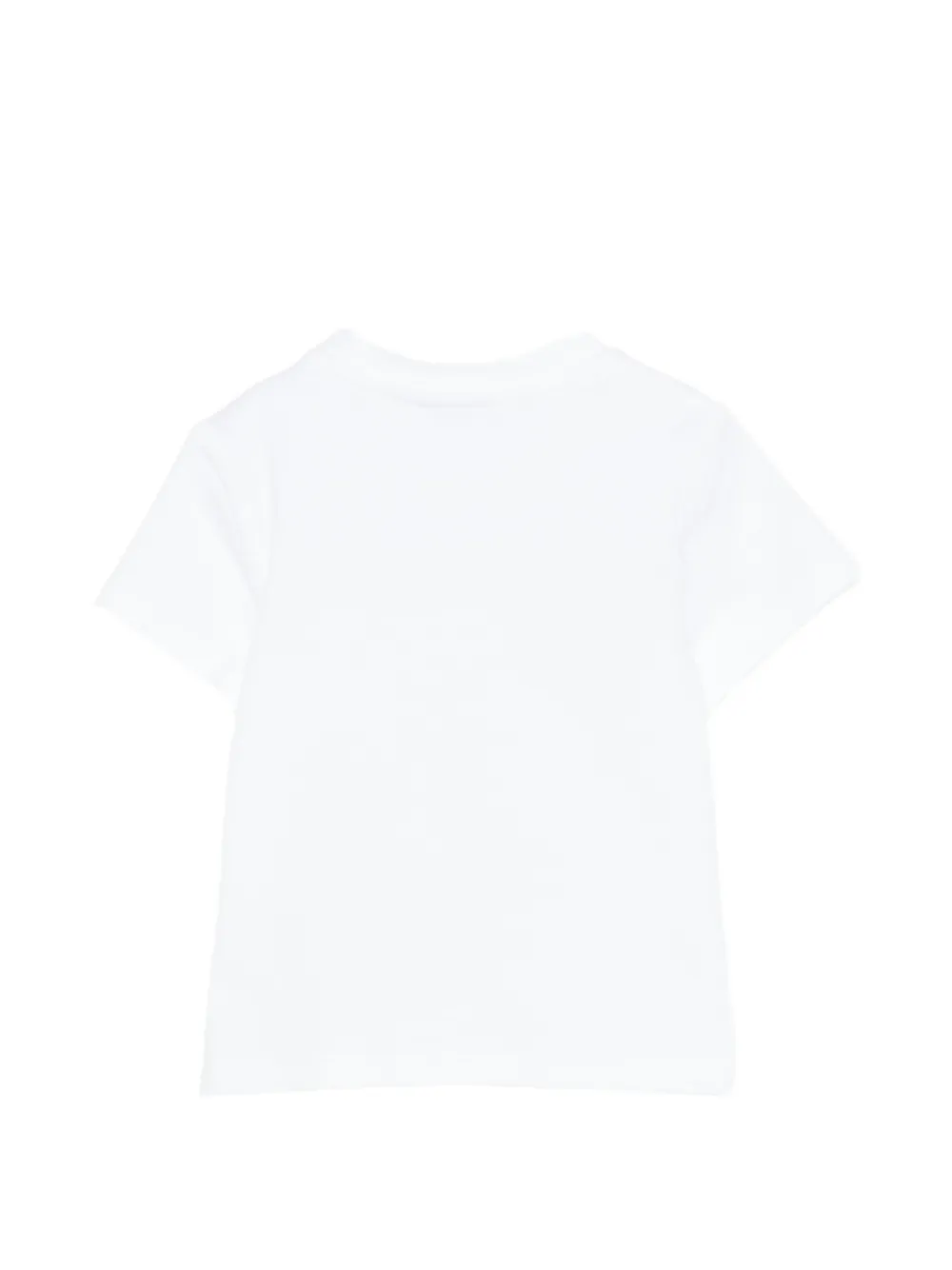 Белая футболка с круглым вырезом, короткими рукавами и логотипом