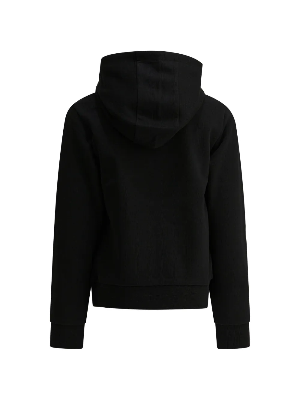 Черная толстовка с логотипом, нашивкой с логотипом, кулиской на капюшоне, длинными рукавами и ребристыми краями