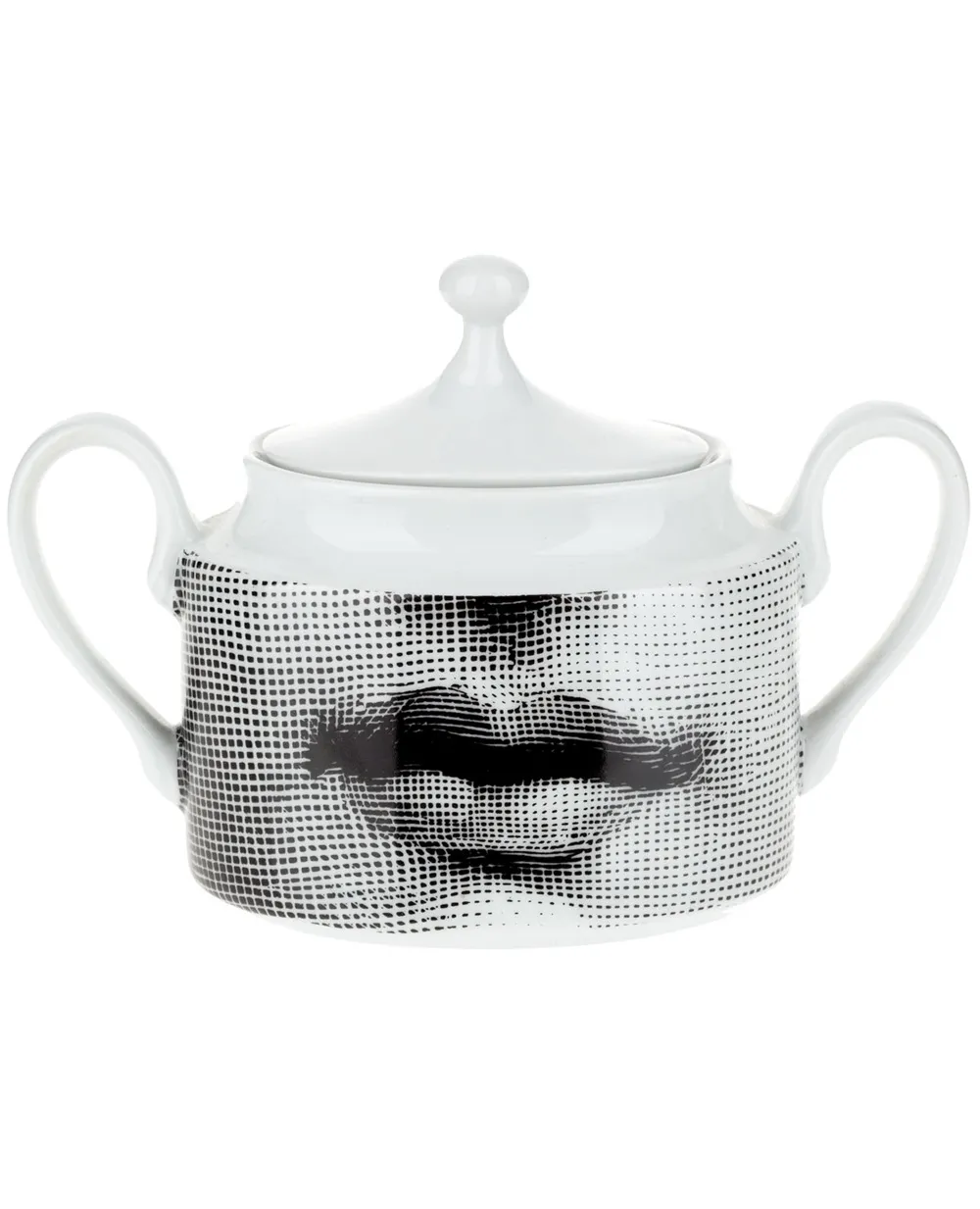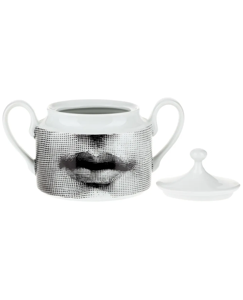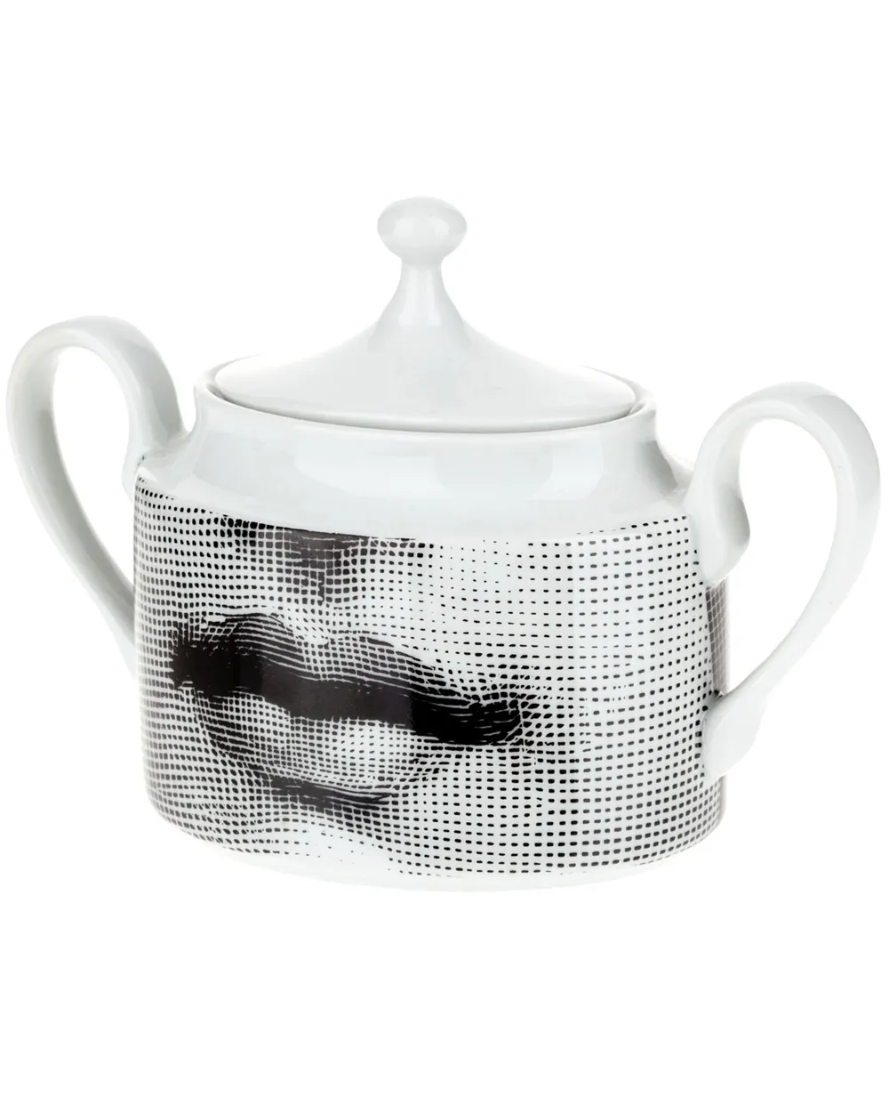 Черно-белая фарфоровая сахарница с принтом от Fornasetti.