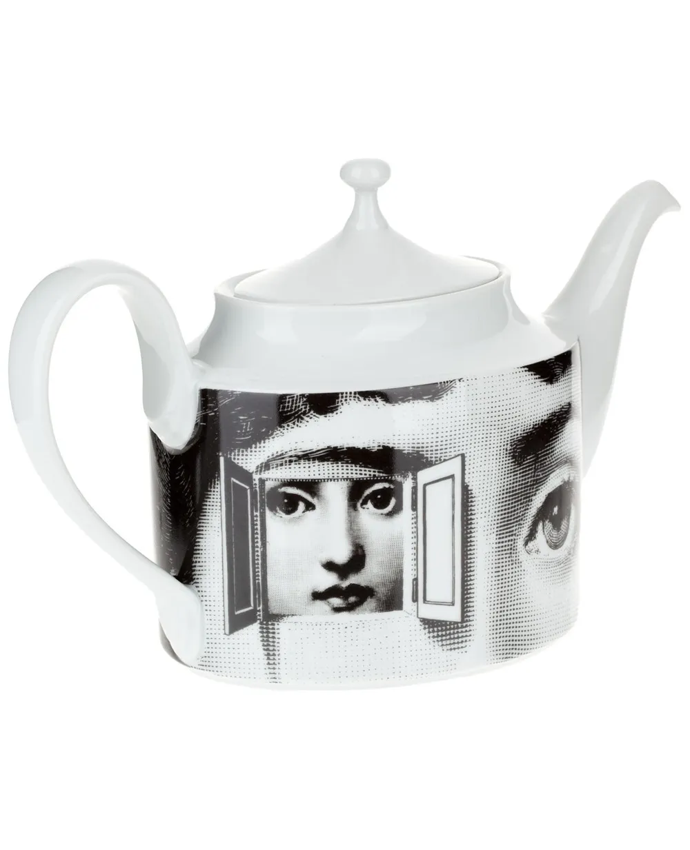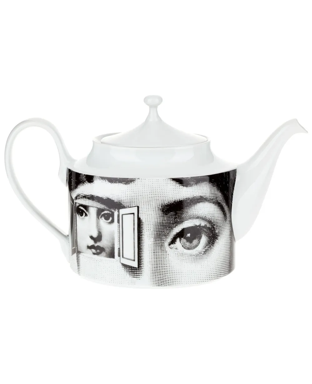 Черно-белый фарфоровый чайник с принтом от Fornasetti.