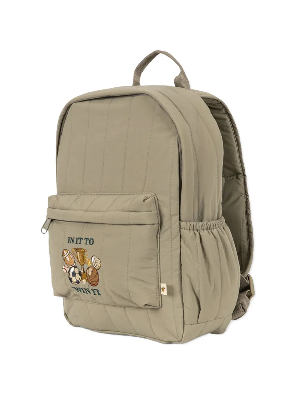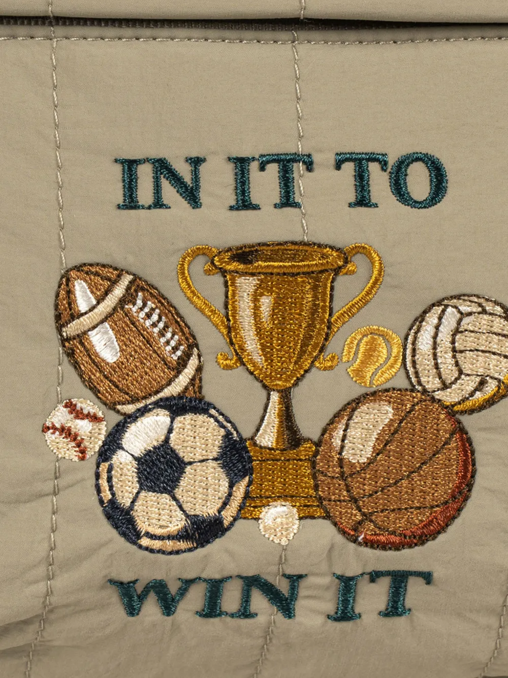Зеленая стеганая отделка, одна верхняя ручка, регулируемые плечевые ремни, передний карман на молнии, вышитый мотив