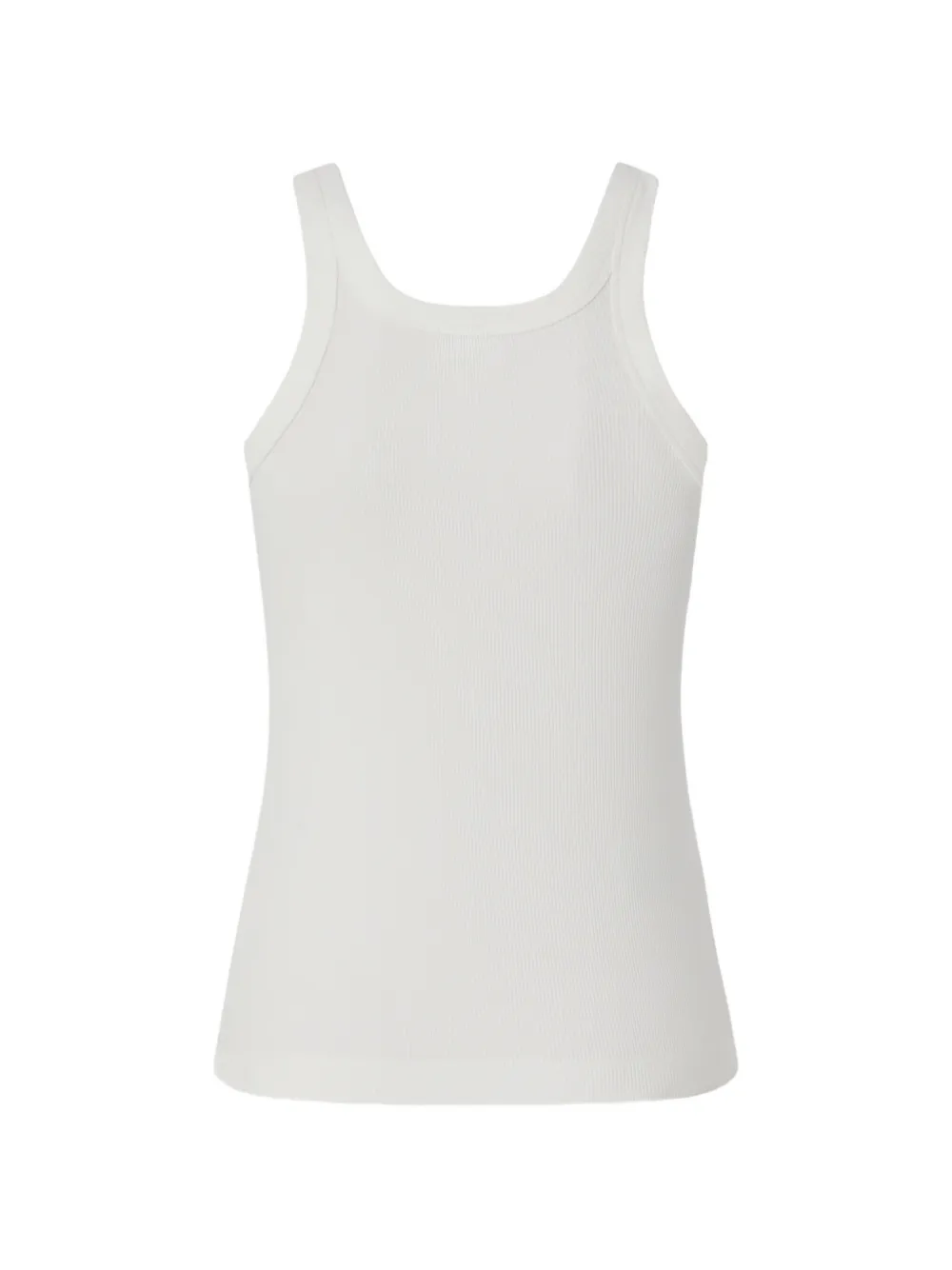 Белый в рубчик трикотажный топ с круглым вырезом, вышитым логотипом, без рукавов, с прямым подолом