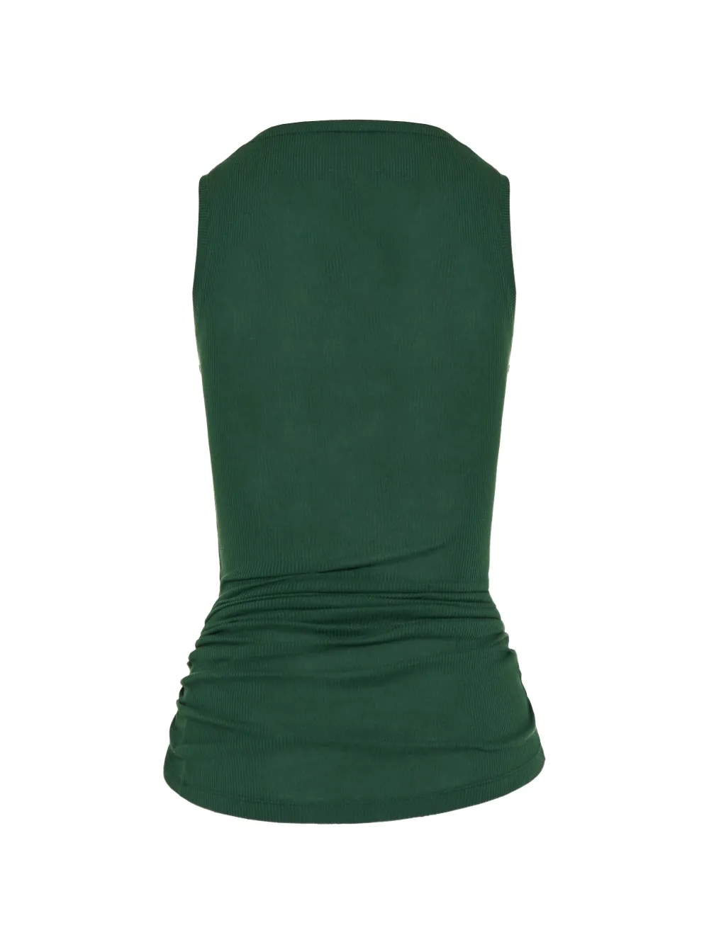 Зеленый топ без рукавов с круглым вырезом и тональной прострочкой