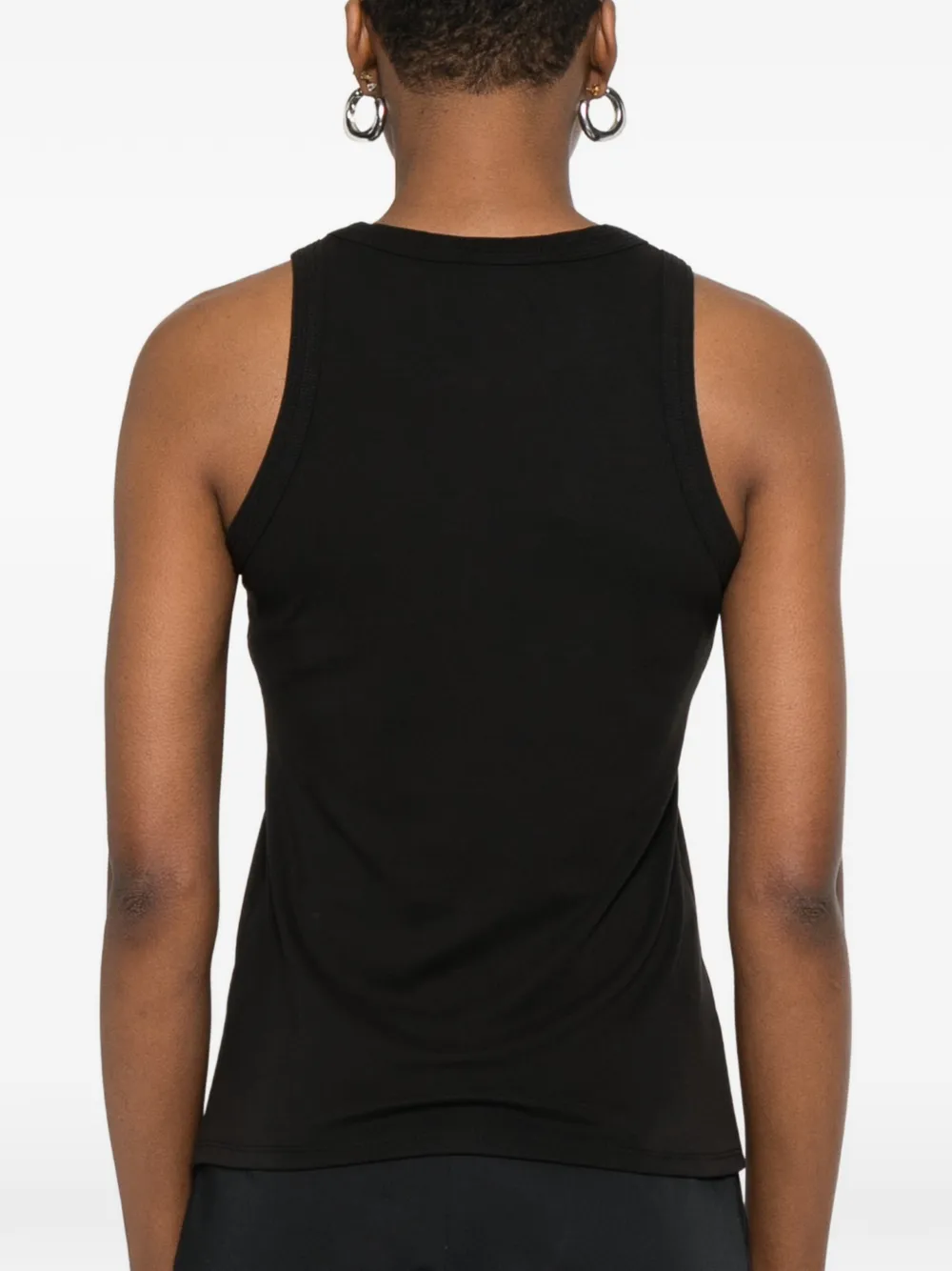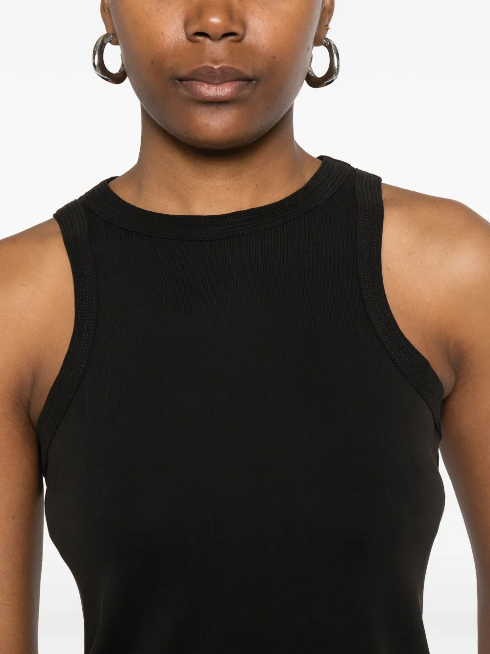 Черный ребристый топ без рукавов с круглым вырезом