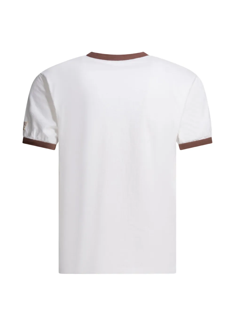 Белая футболка с графическим принтом, воротник-рингер, короткие рукава, тональная отстрочка, нашивка с логотипом