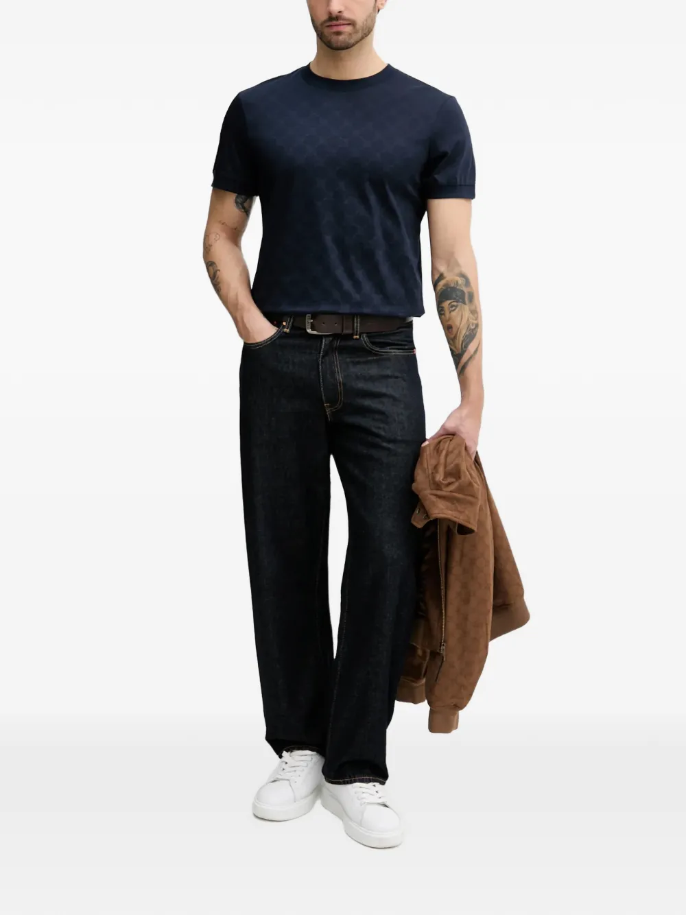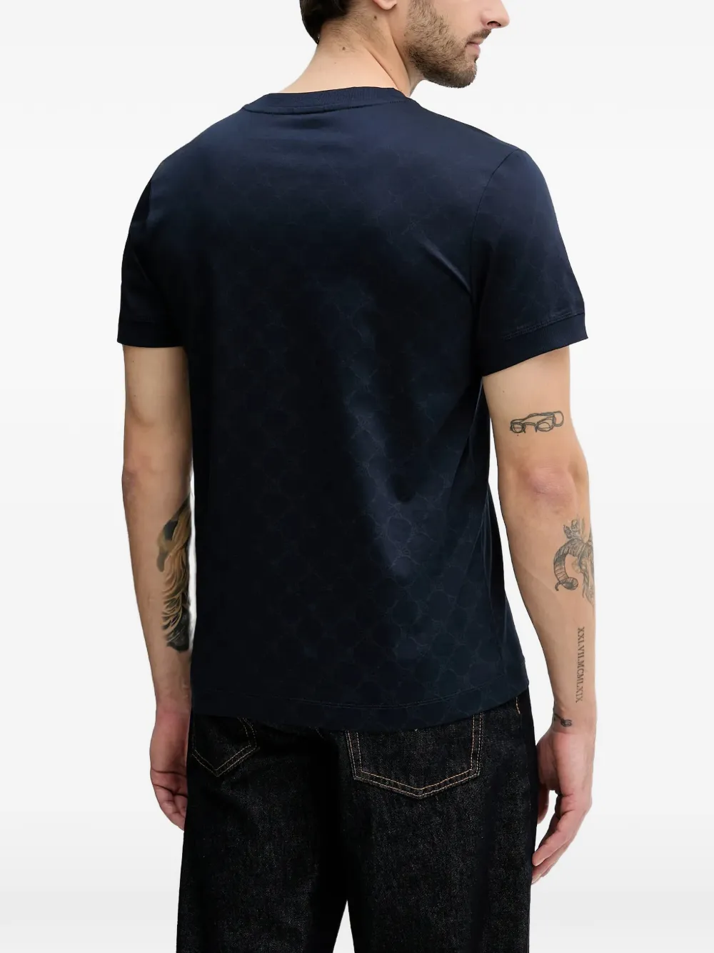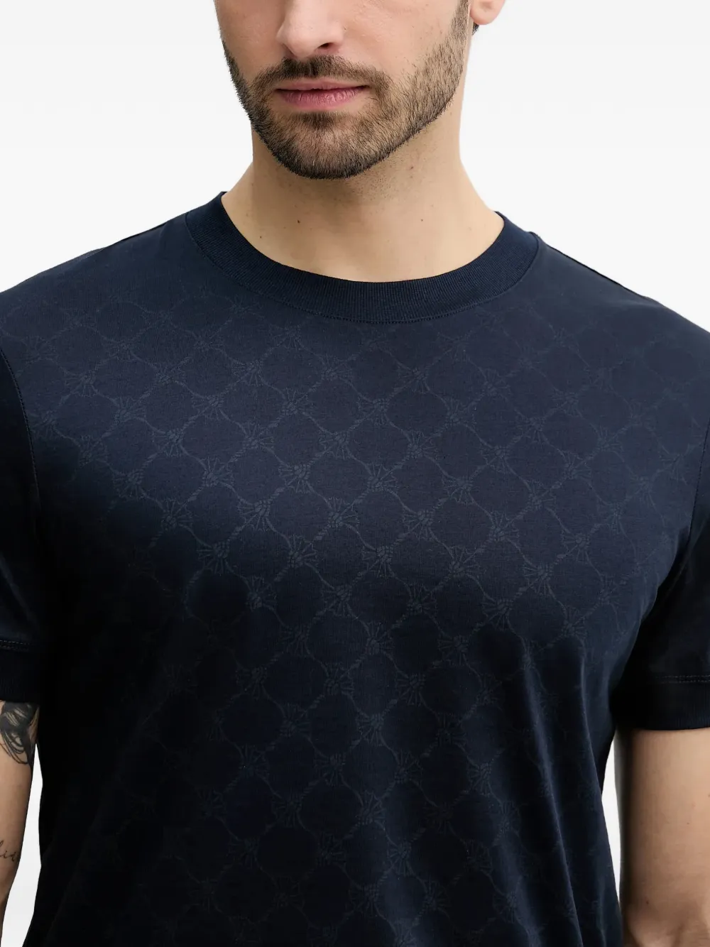 Темно-синяя футболка с круглым вырезом, короткими рукавами и узором по всей поверхности
