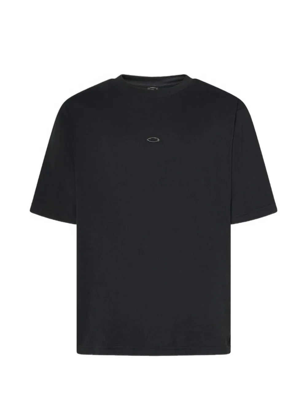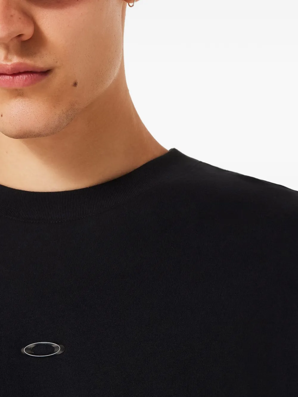 Черная футболка с логотипом, короткими рукавами и круглым вырезом