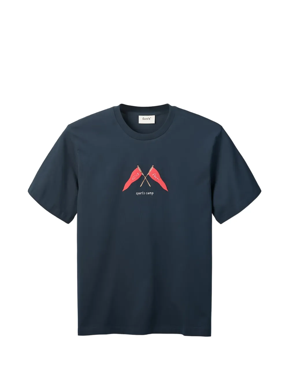 Голубая футболка с круглым вырезом, короткими рукавами и принтом