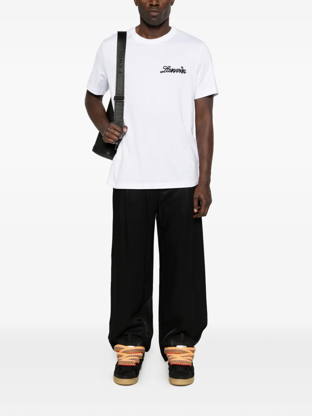 Белая футболка с вышивкой, круглым вырезом и короткими рукавами
