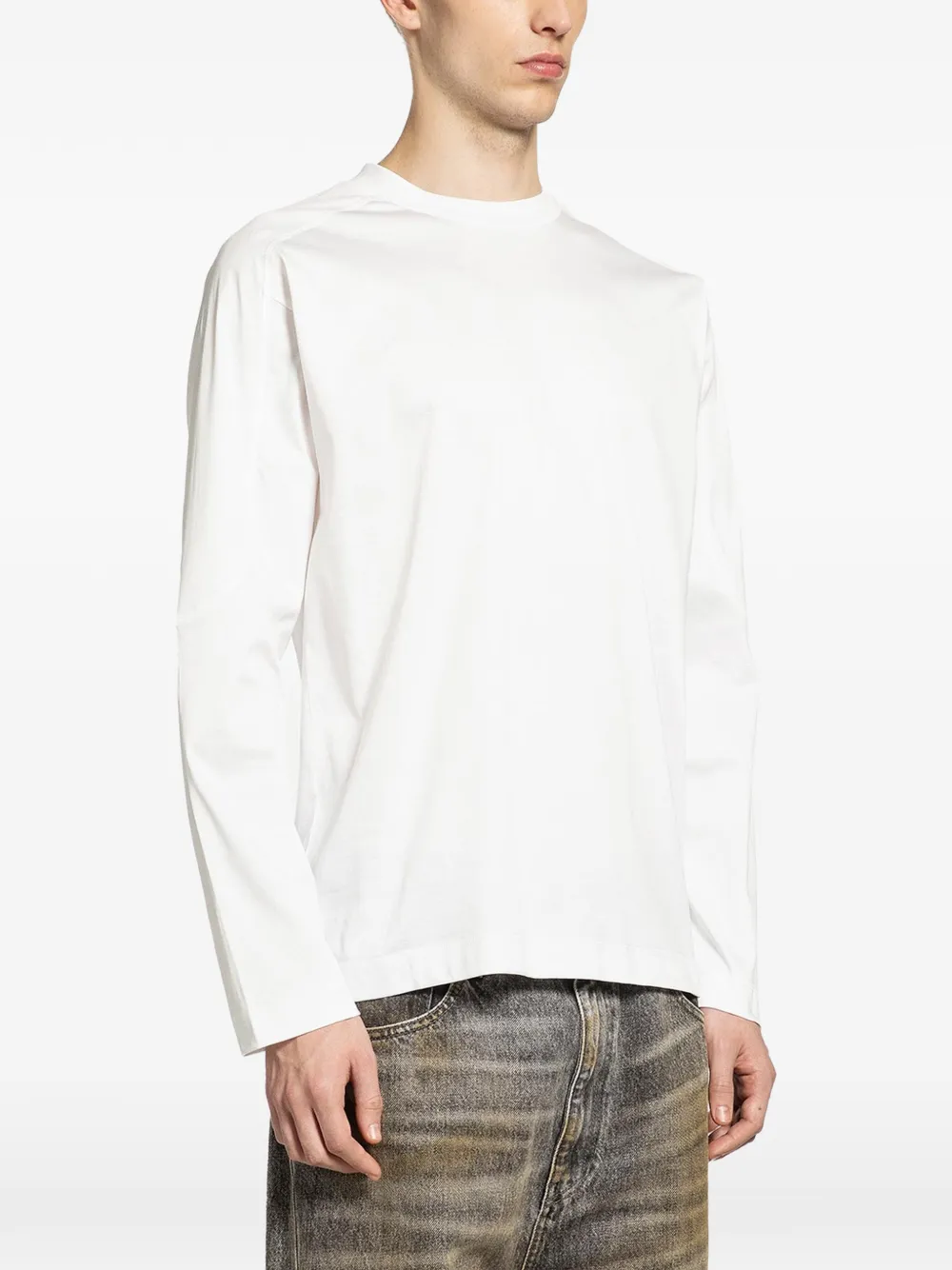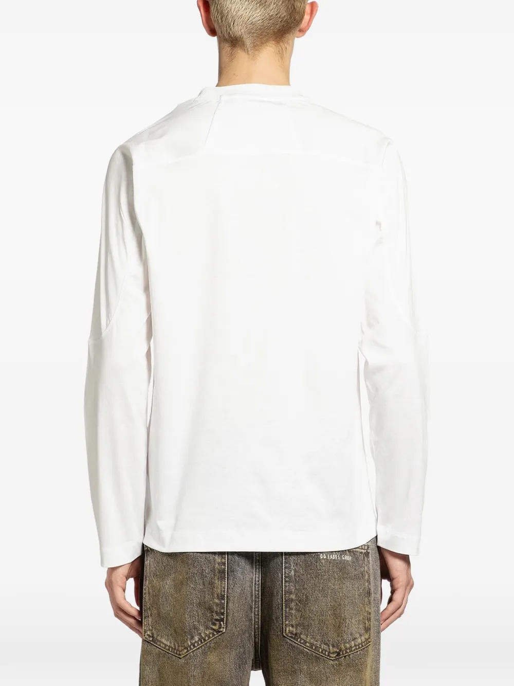Белый лонгслив с панелями, круглым вырезом и прямым подолом