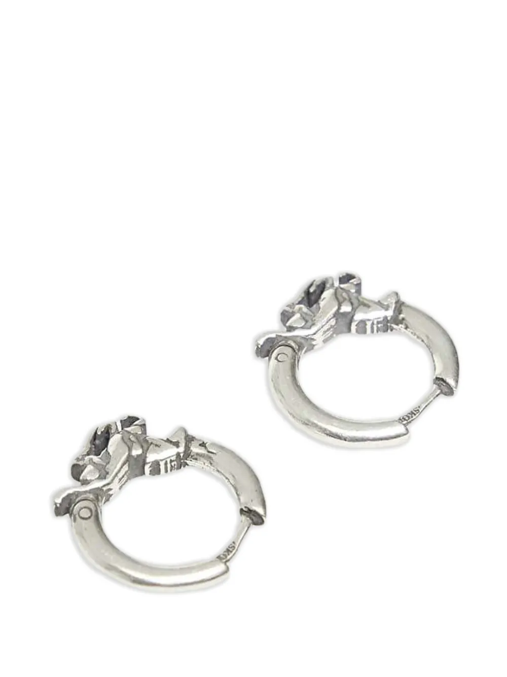 Серьги с покрытием под серебро, украшенные элементом в виде лошади и выполненные в виде колец. Эти серьги продаются в паре.