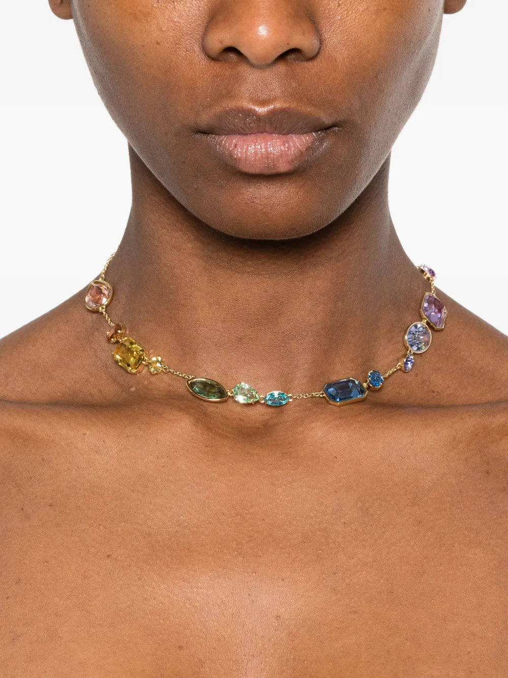 Подробнее о товаре: • золотистый и разноцветный • разрезы • цепочный дизайн • замок-карабин • Повседневное использование и воздействие внешних факторов могут уменьшить блеск драгоценных камней и поверхностей, покрытых золотом. Для ухода используйте специальные неабразивные средства, предназначенные для чистки ювелирных изделий. • Этот товар доставят в его оригинальной упаковке.