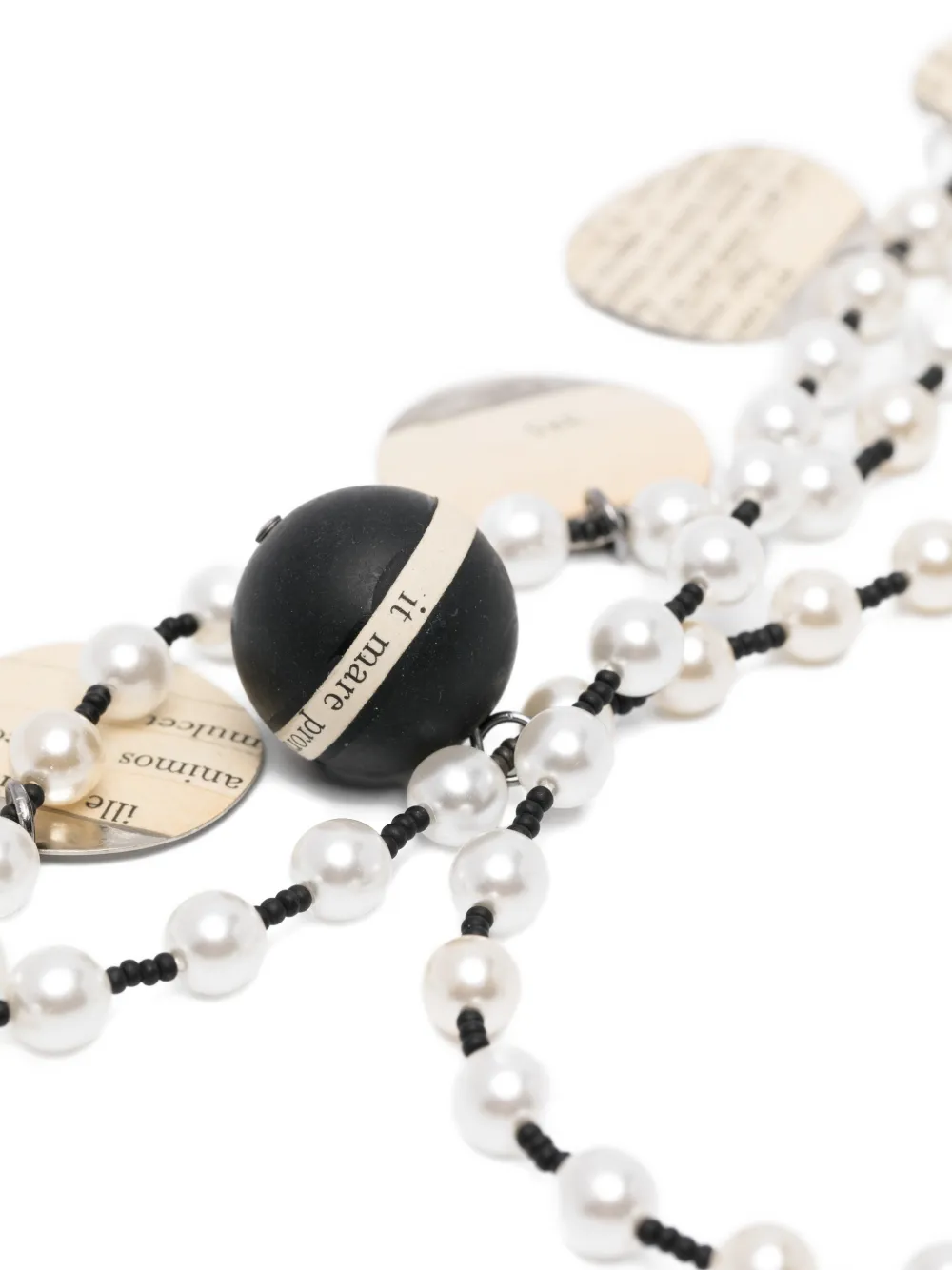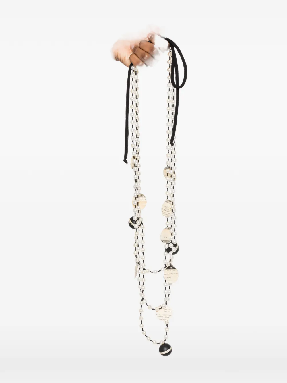 Черно-белая цепочка с бусинами, украшение в виде круглого диска, завязка