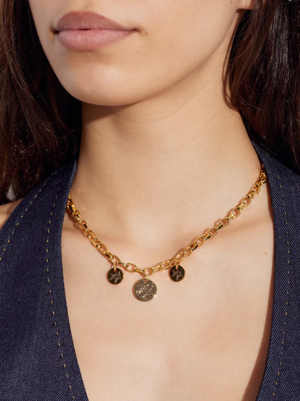 Желтые кулоны в виде монет, застежка-карабин