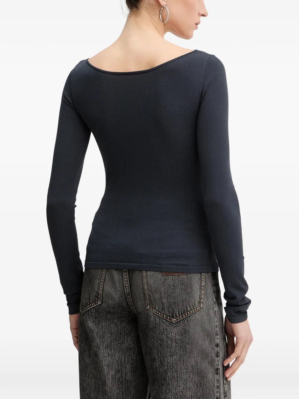 Темно-серая футболка с длинными рукавами, вырезом лодочка и логотипом