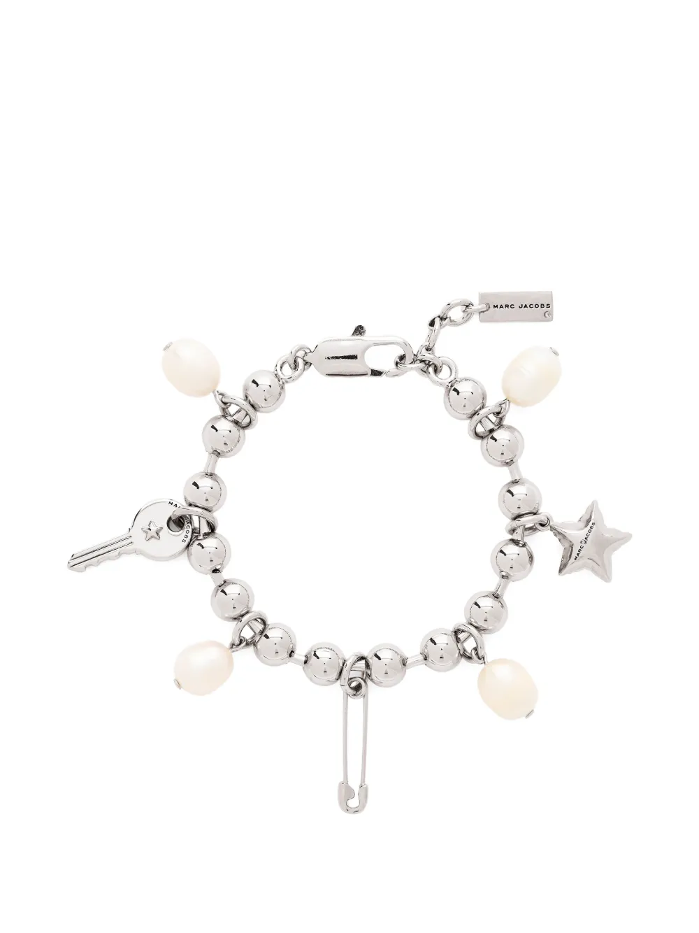 Деталь в виде серебряного шарма, деталь в виде жемчуга, деталь в виде бусины, деталь в виде английской булавки, деталь в виде ключа. Обычное ежедневное использование и воздействие внешних факторов могут снизить блеск драгоценных камней и золотых поверхностей. Для ухода используйте специальные неабразивные средства, предназначенные для чистки ювелирных изделий.