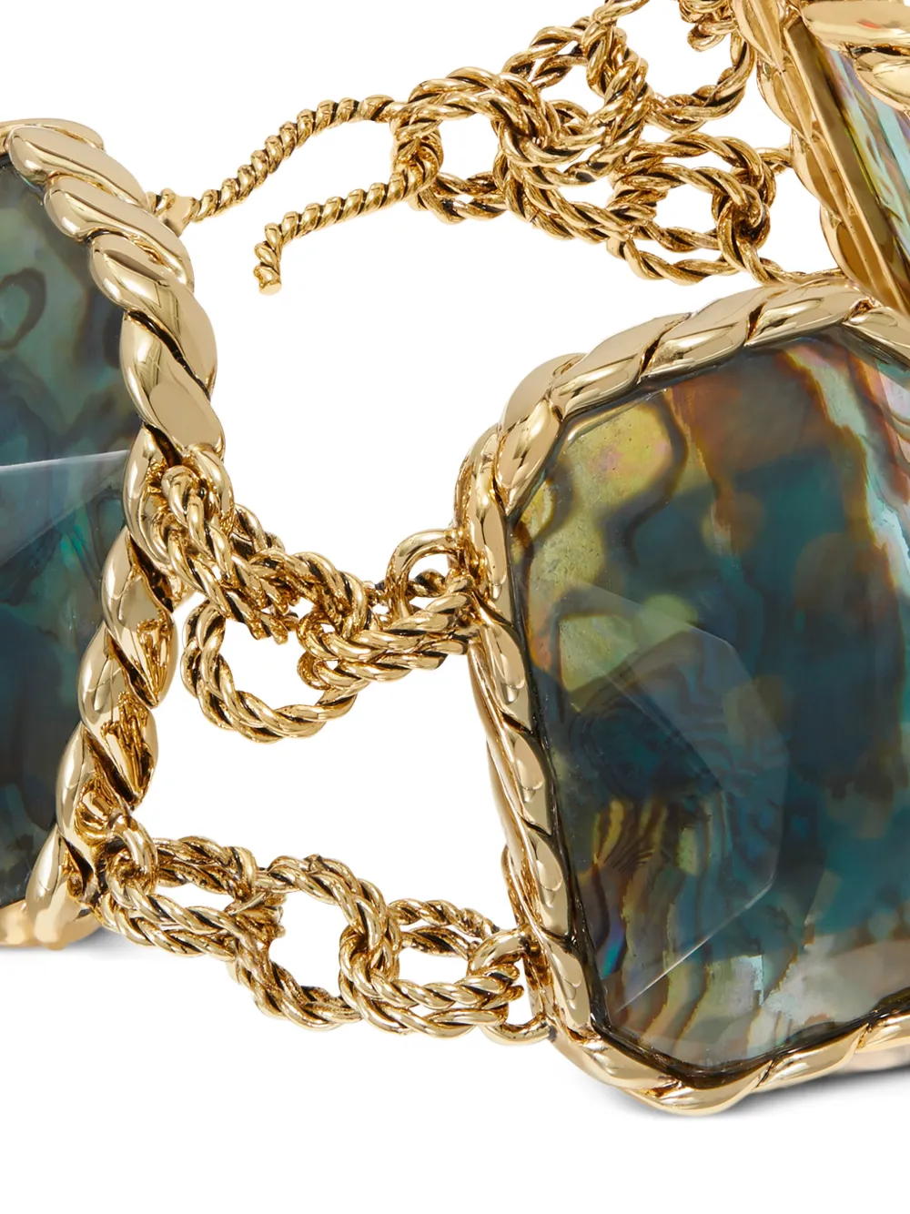 Латунь, покрытая 18-каратным золотом, Эпоксидная смола, Перламутр