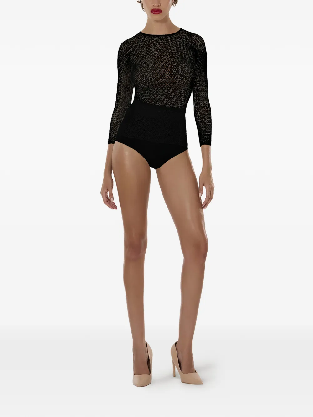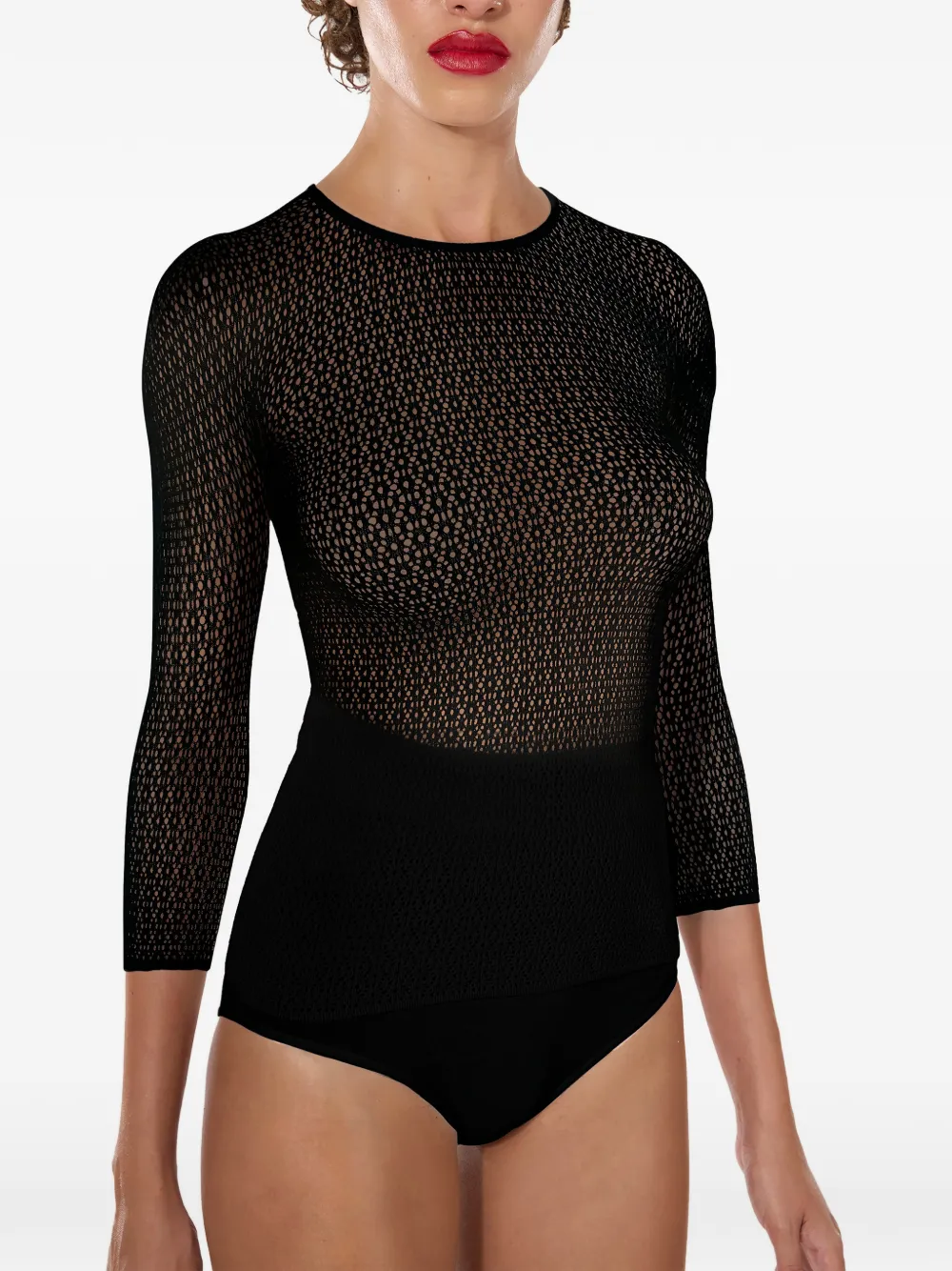 Сетчатый топ с длинными рукавами Wolford, черный
