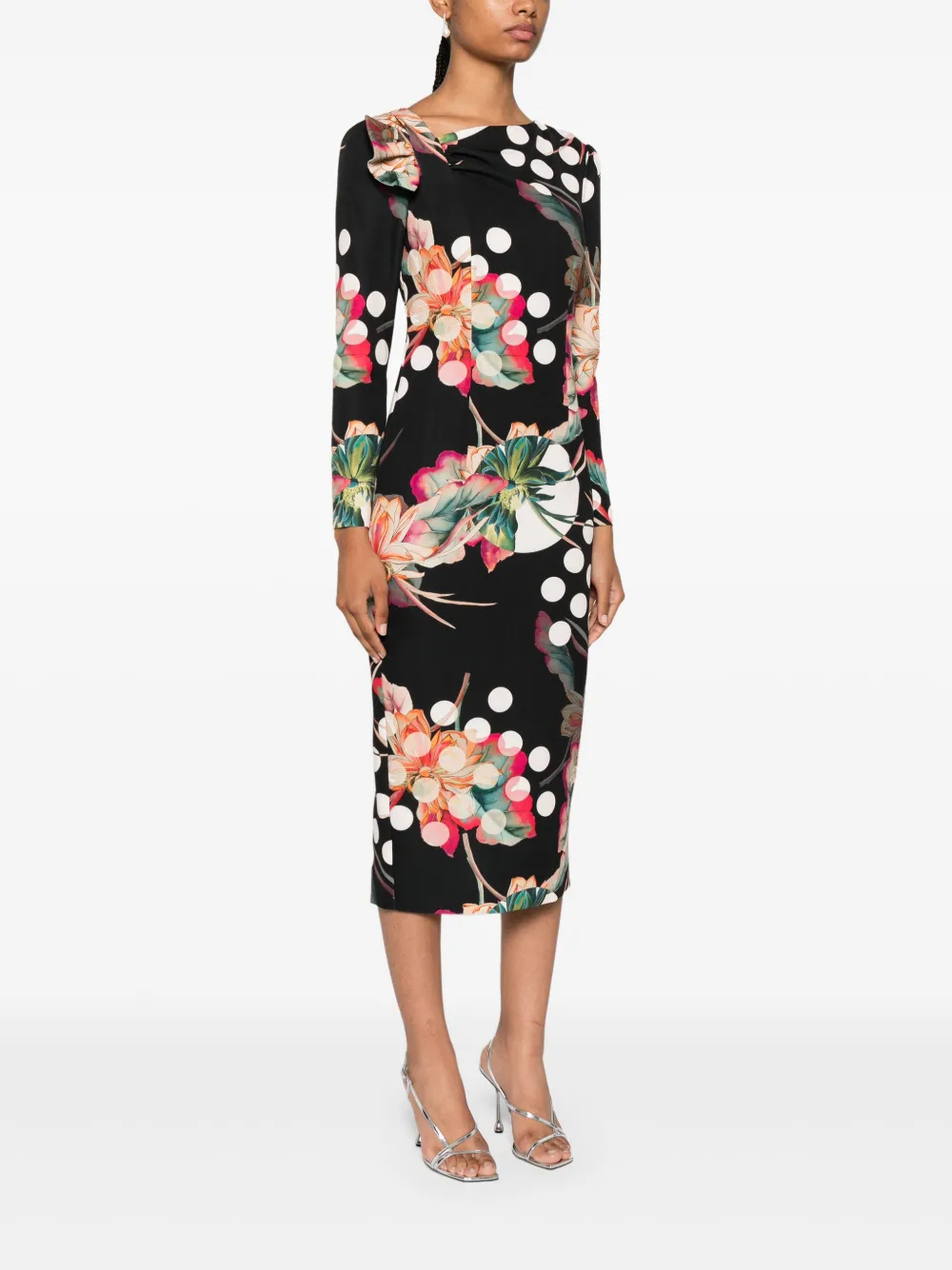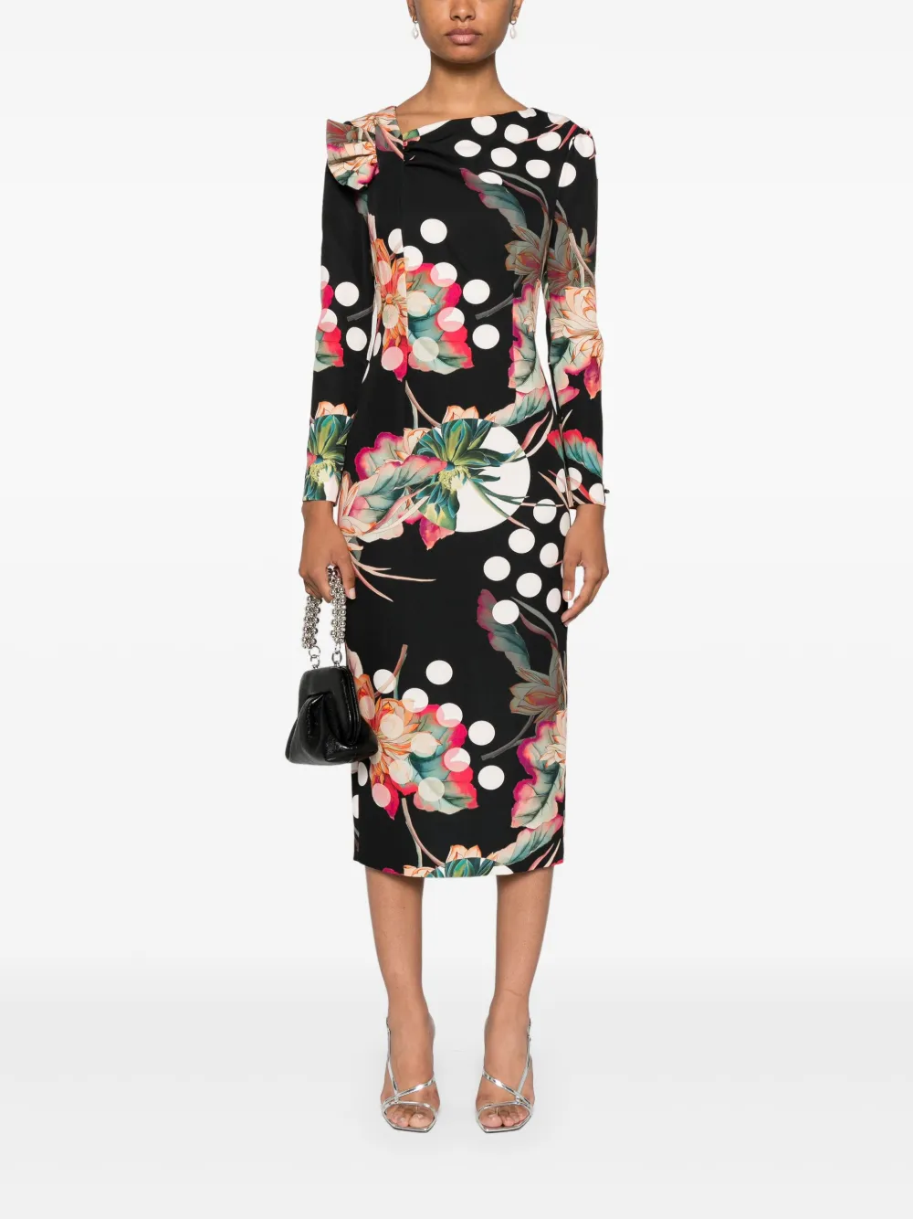Платье миди с цветочным принтом Nissa, черный