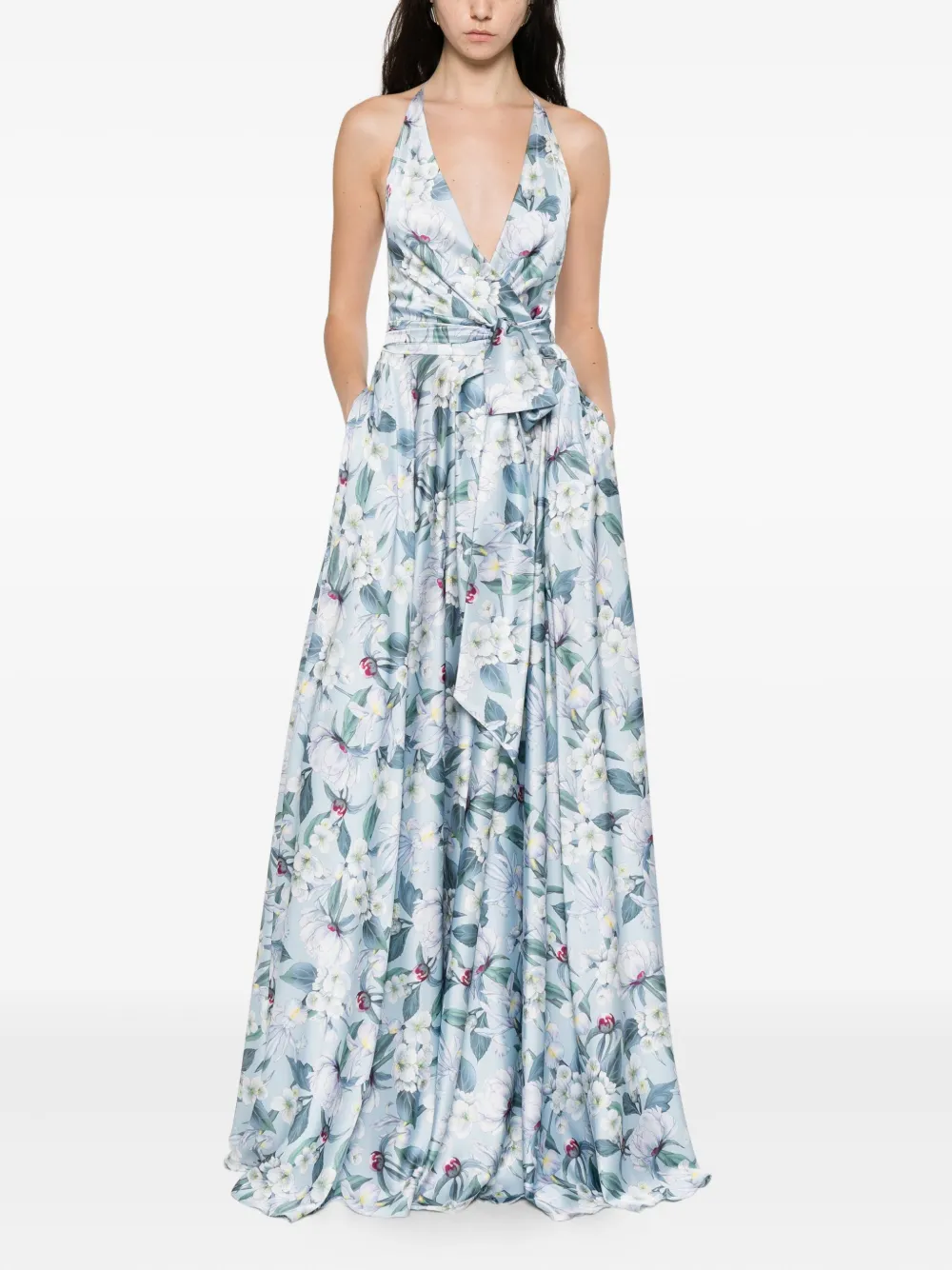 Платье с вырезом халтер и цветочным принтом Giada Curti, синий 82 190₽