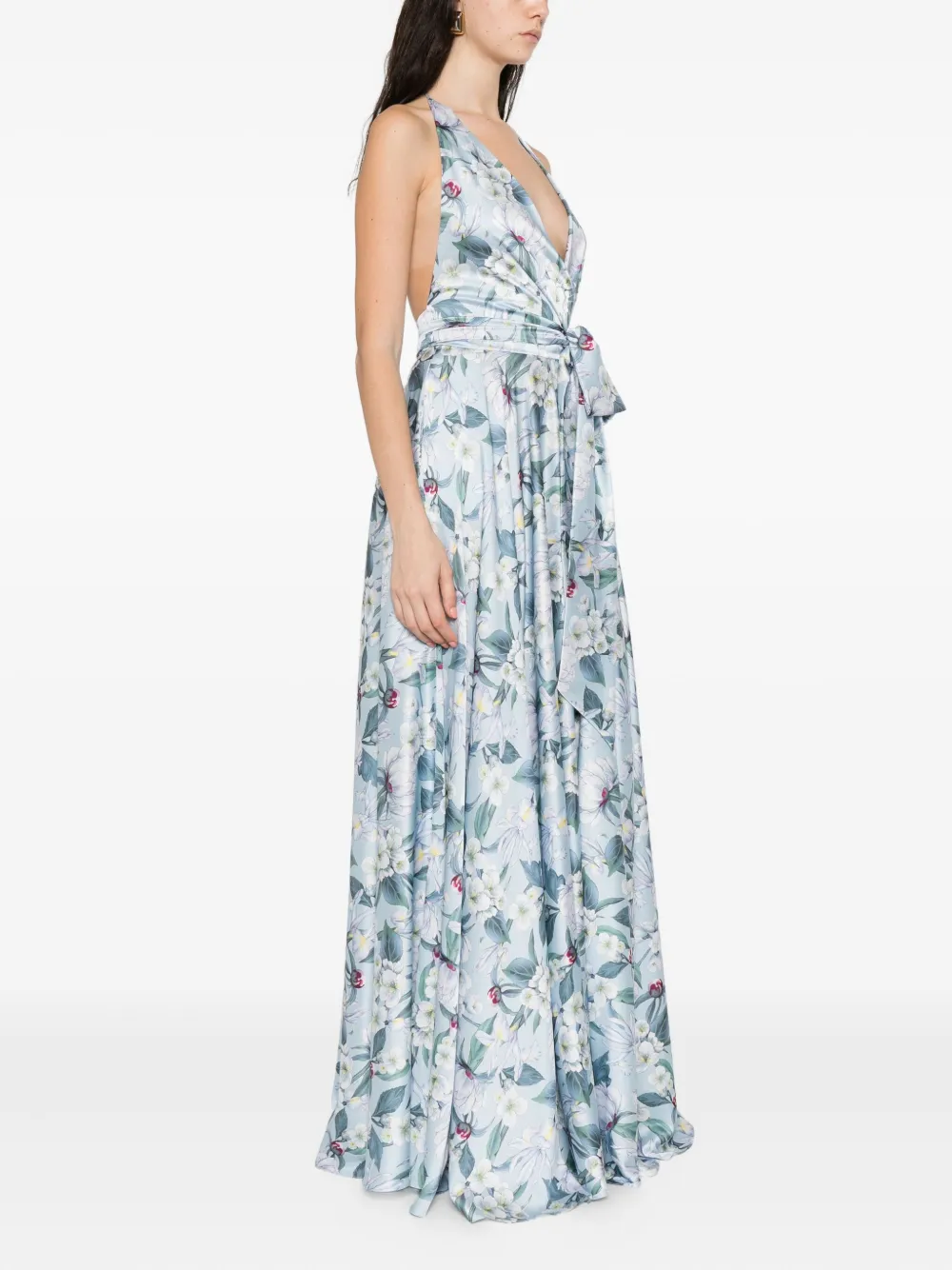 Платье с вырезом халтер и цветочным принтом Giada Curti, синий