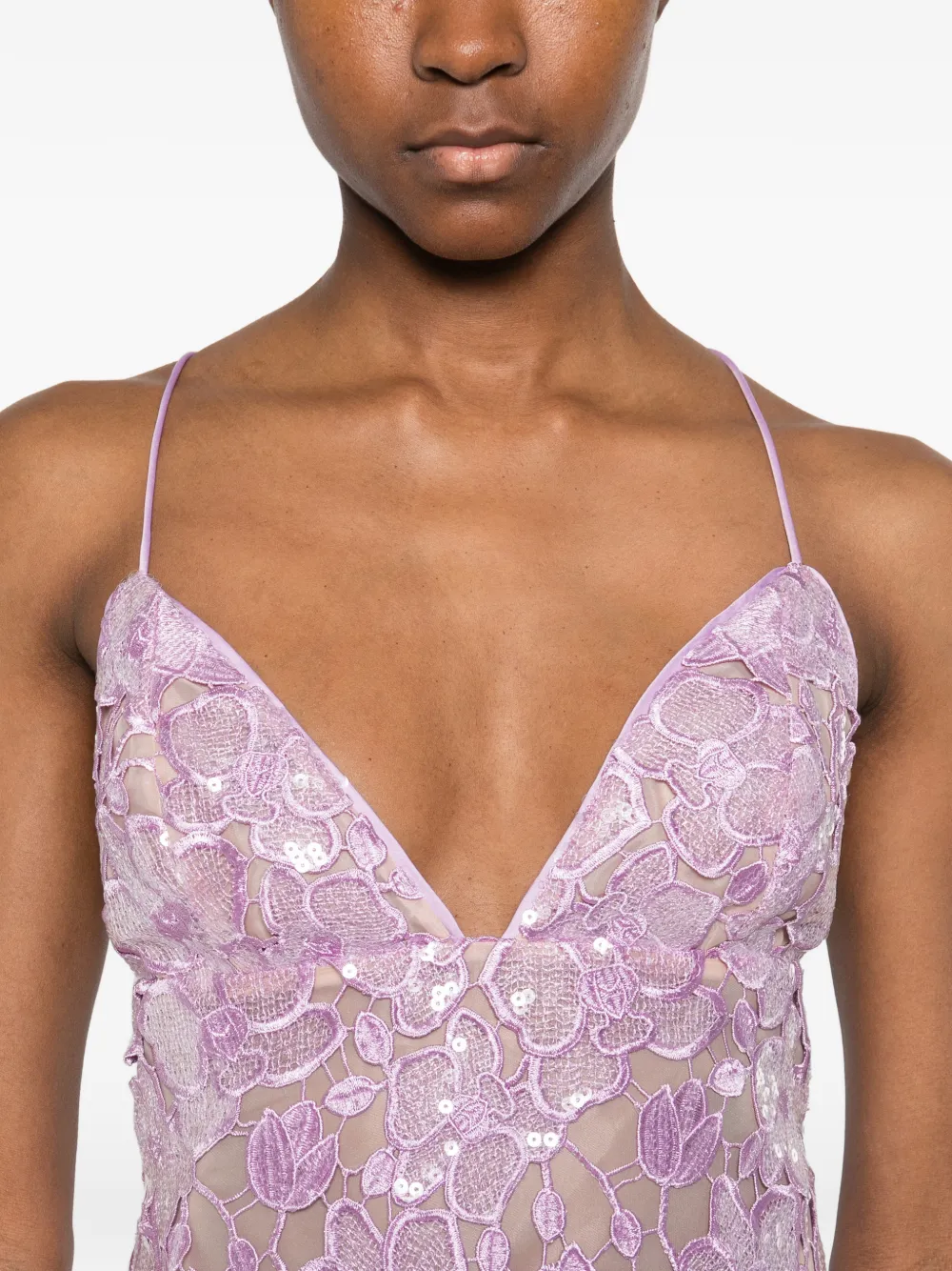 Лавандовые цветочные аппликации, отделка пайетками, V-образный вырез, перекрещивающиеся бретели, зубчатая отделка