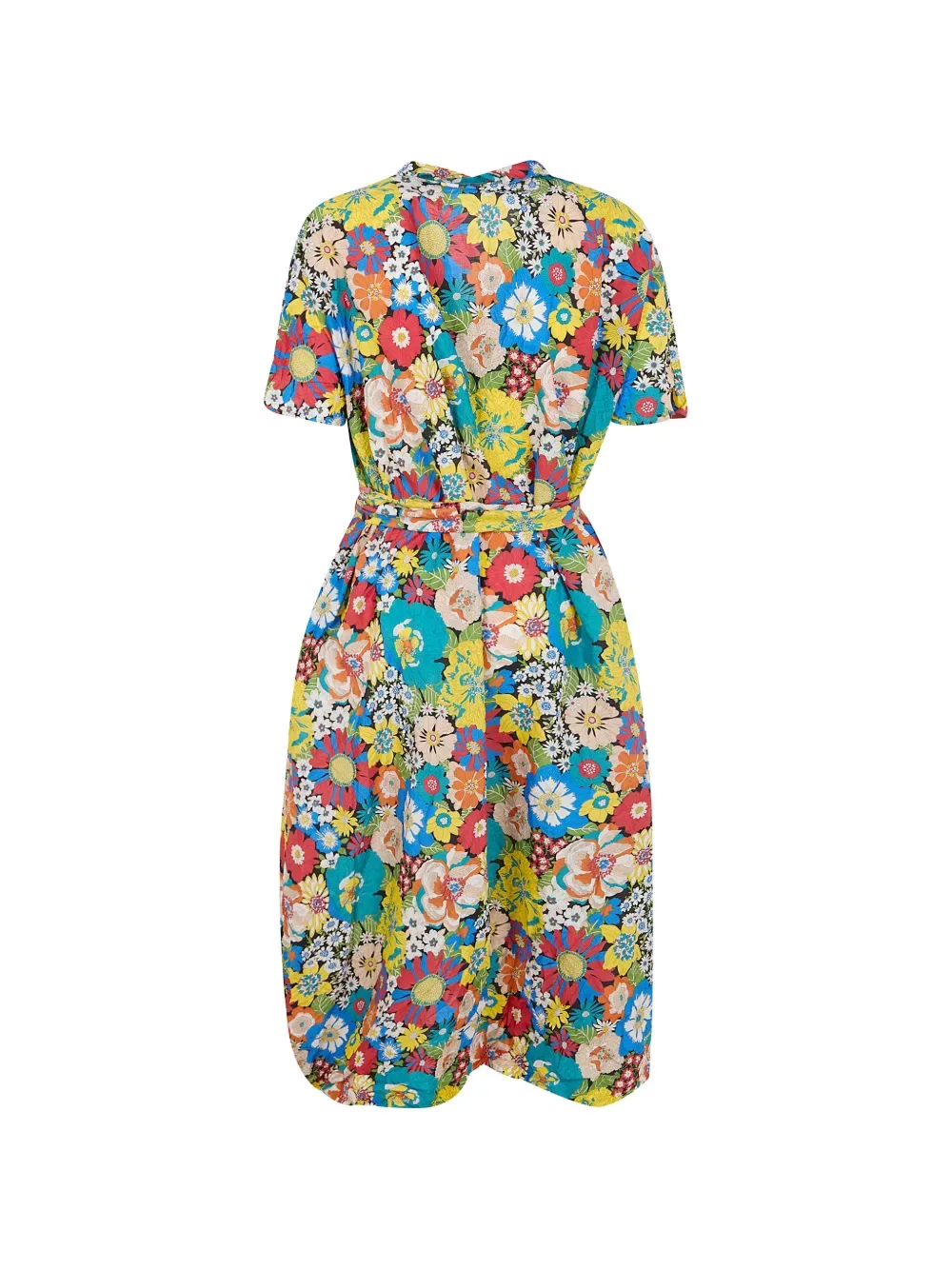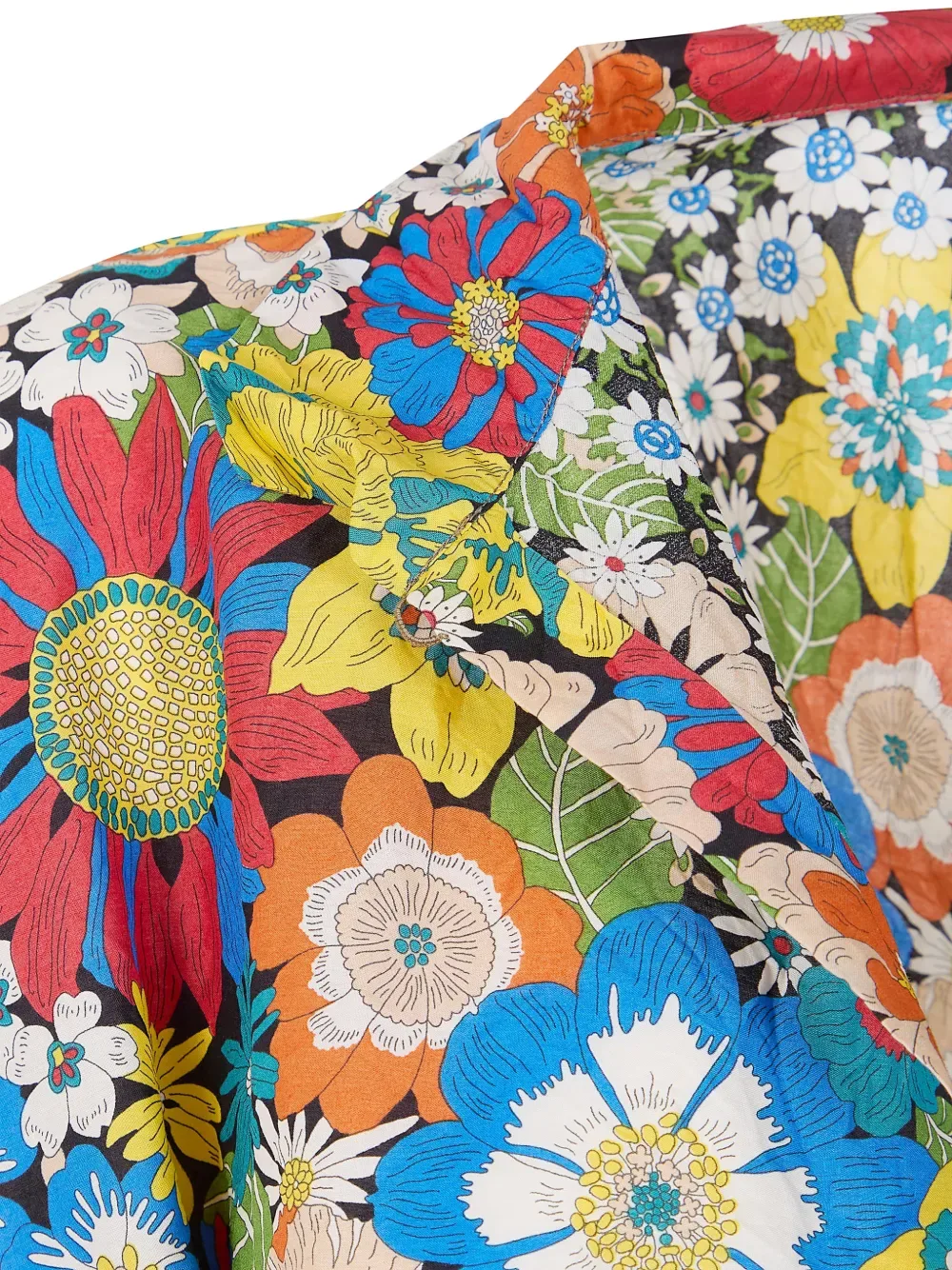 Синий и разноцветный галстук-ремень с цветочным принтом, короткие рукава, V-образный вырез, рубашечный воротник