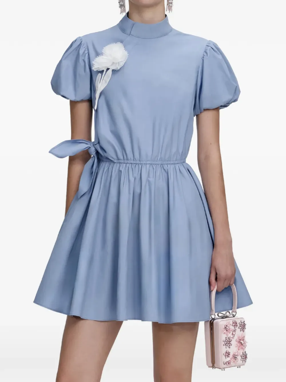 Мини-платье с пышными рукавами Self-Portrait, синий