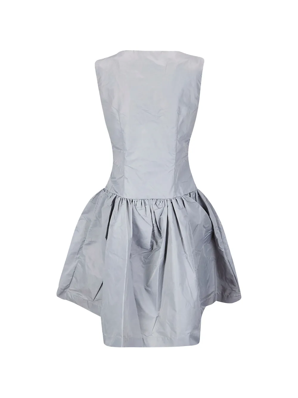 Грифельно-серое платье без рукавов с круглым вырезом, оборками и силуэтом трапеция (A-line), свободного кроя