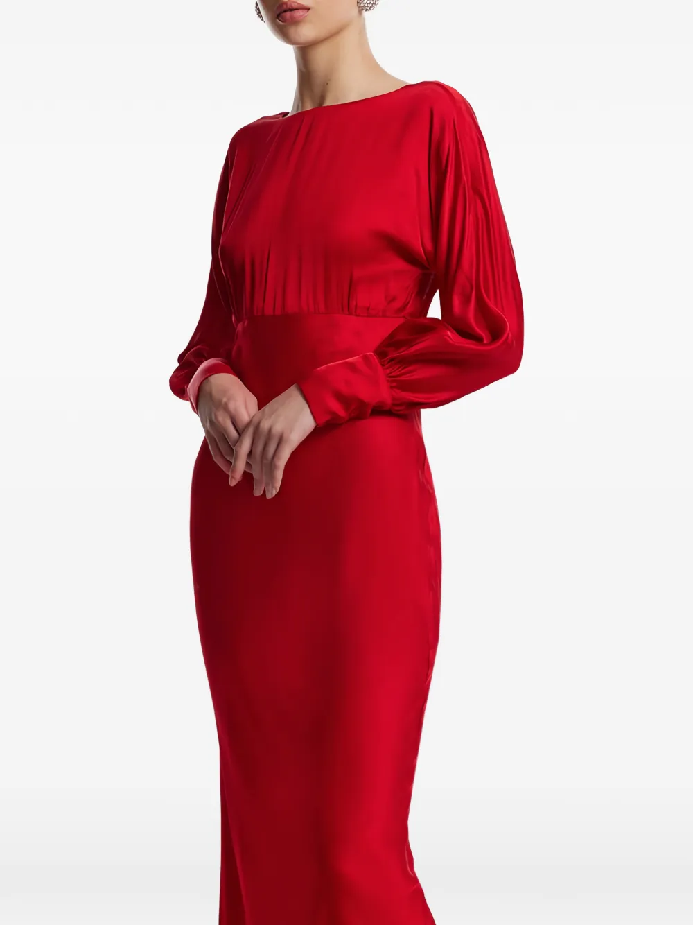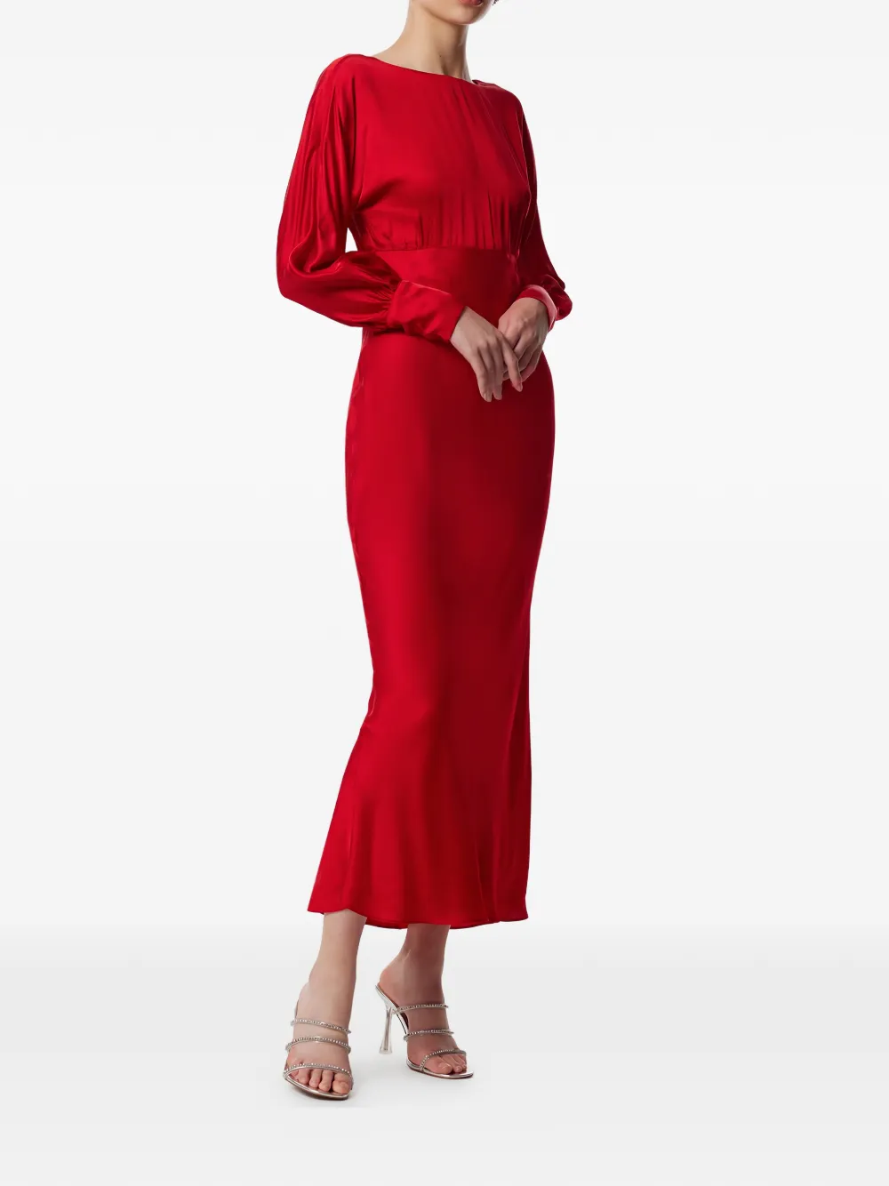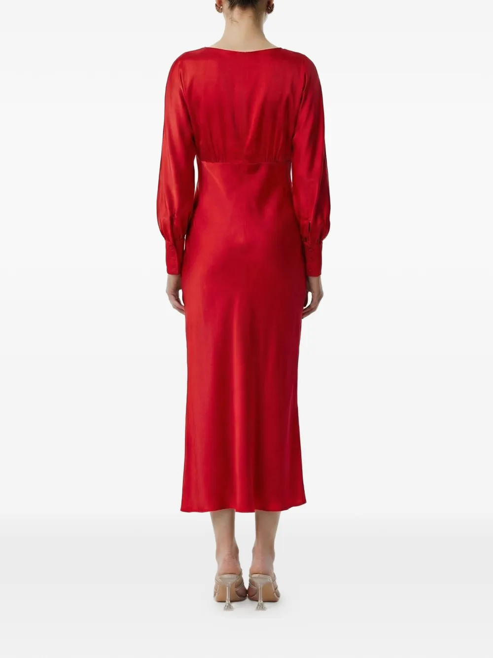Красный, длинные рукава, приталенный силуэт, круглый вырез, застежка-молния сзади, манжеты на пуговицах