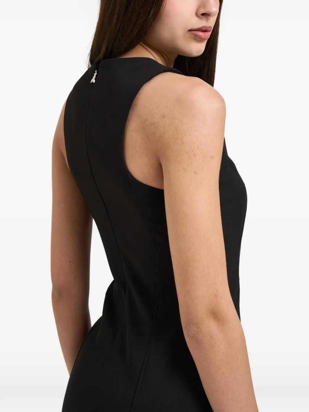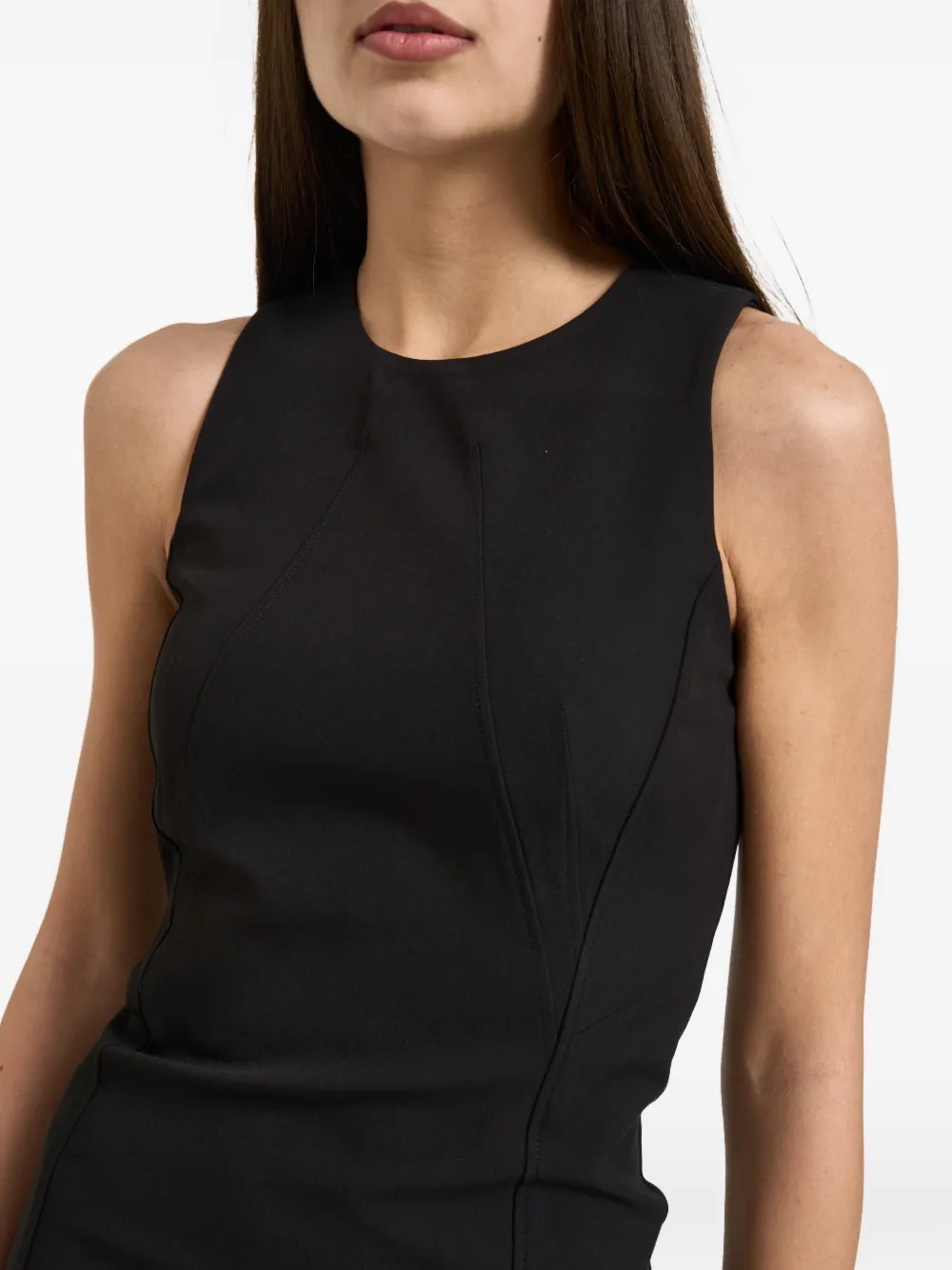 Черное платье без рукавов с круглым вырезом, застежкой-молнией, разрезом сбоку и панельной конструкцией
