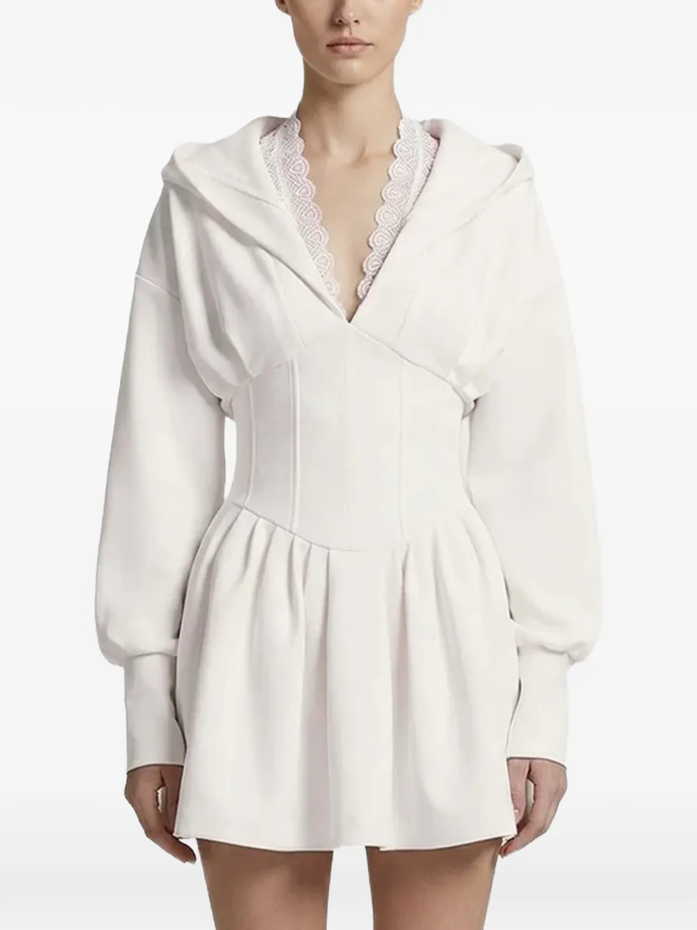 Белый топ с кружевной отделкой, V-образным вырезом, длинными рукавами, капюшоном и корсетными деталями