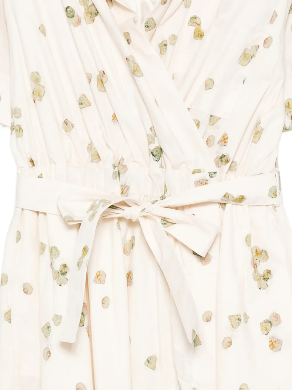 Слоново-костюмное платье с цветочным принтом, поясом, широким воротником, короткими рукавами и запахом