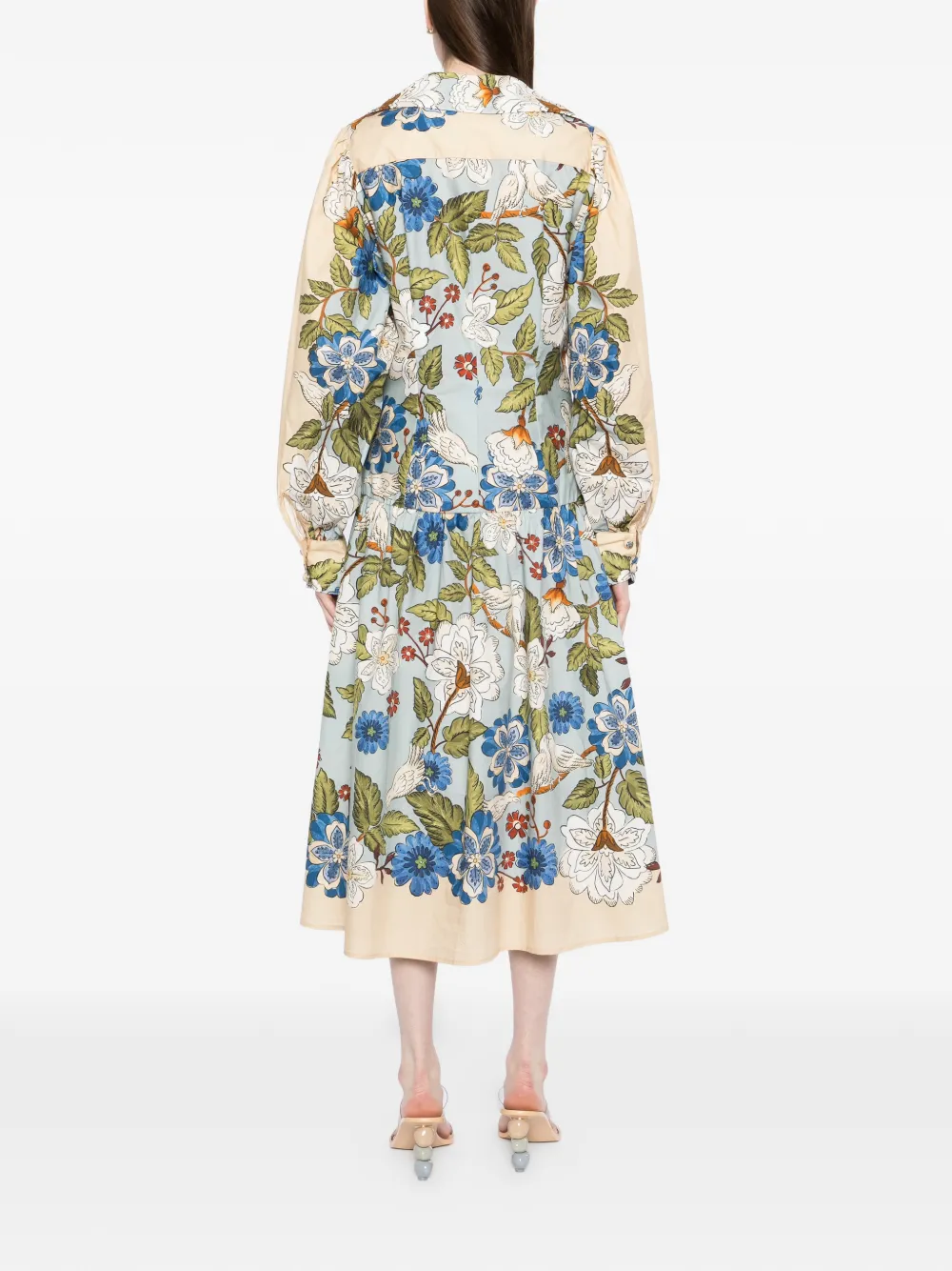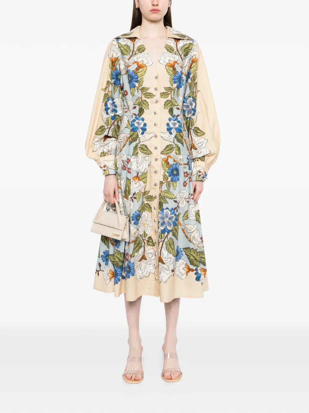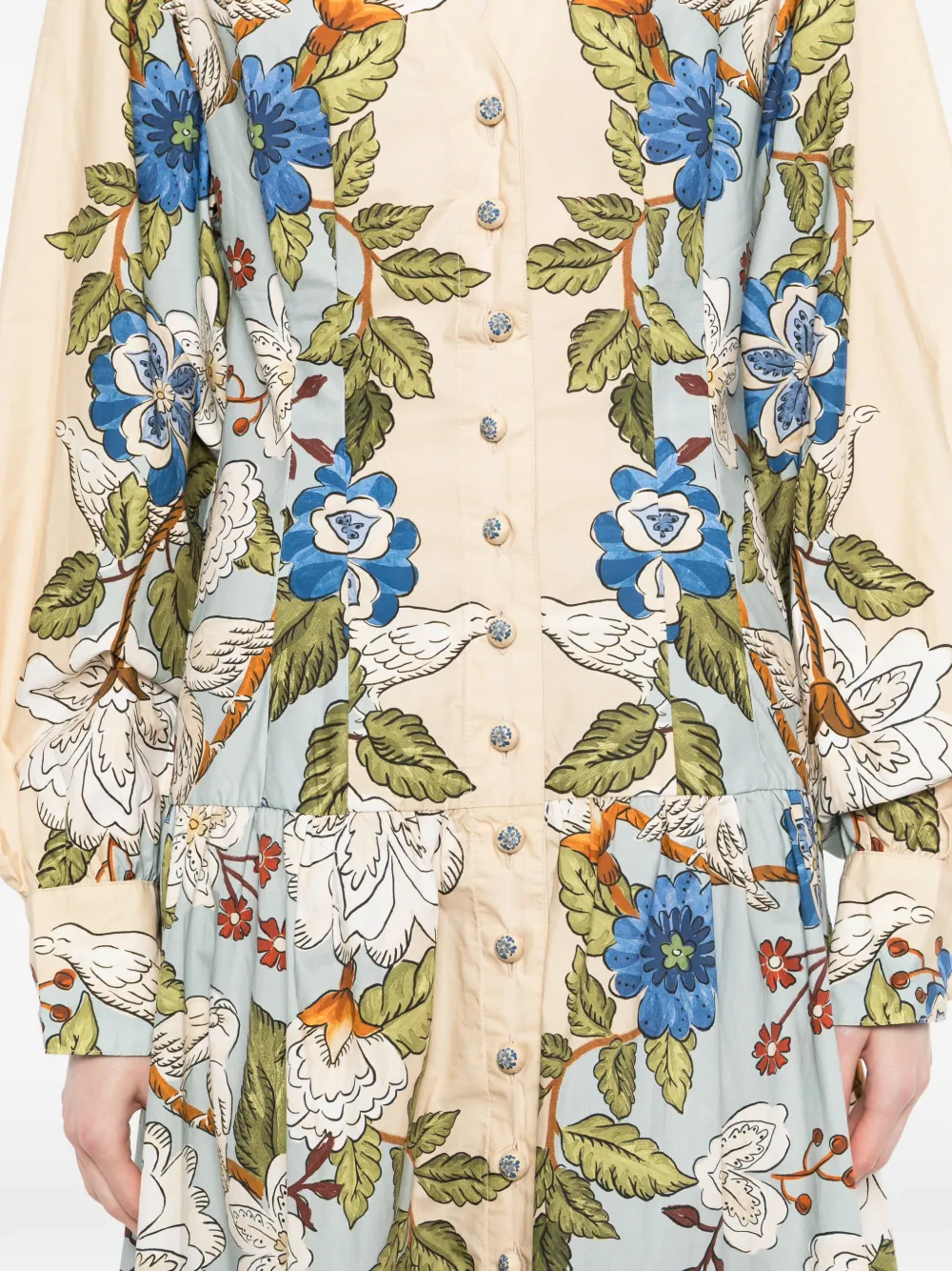 Нейтральный оттенок, цветочный принт, застежка на пуговицы спереди, длинные рукава, V-образный вырез