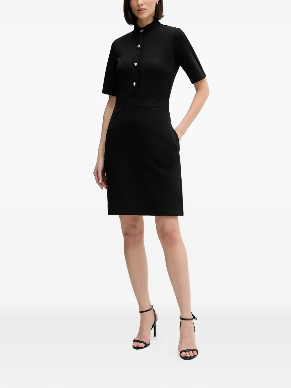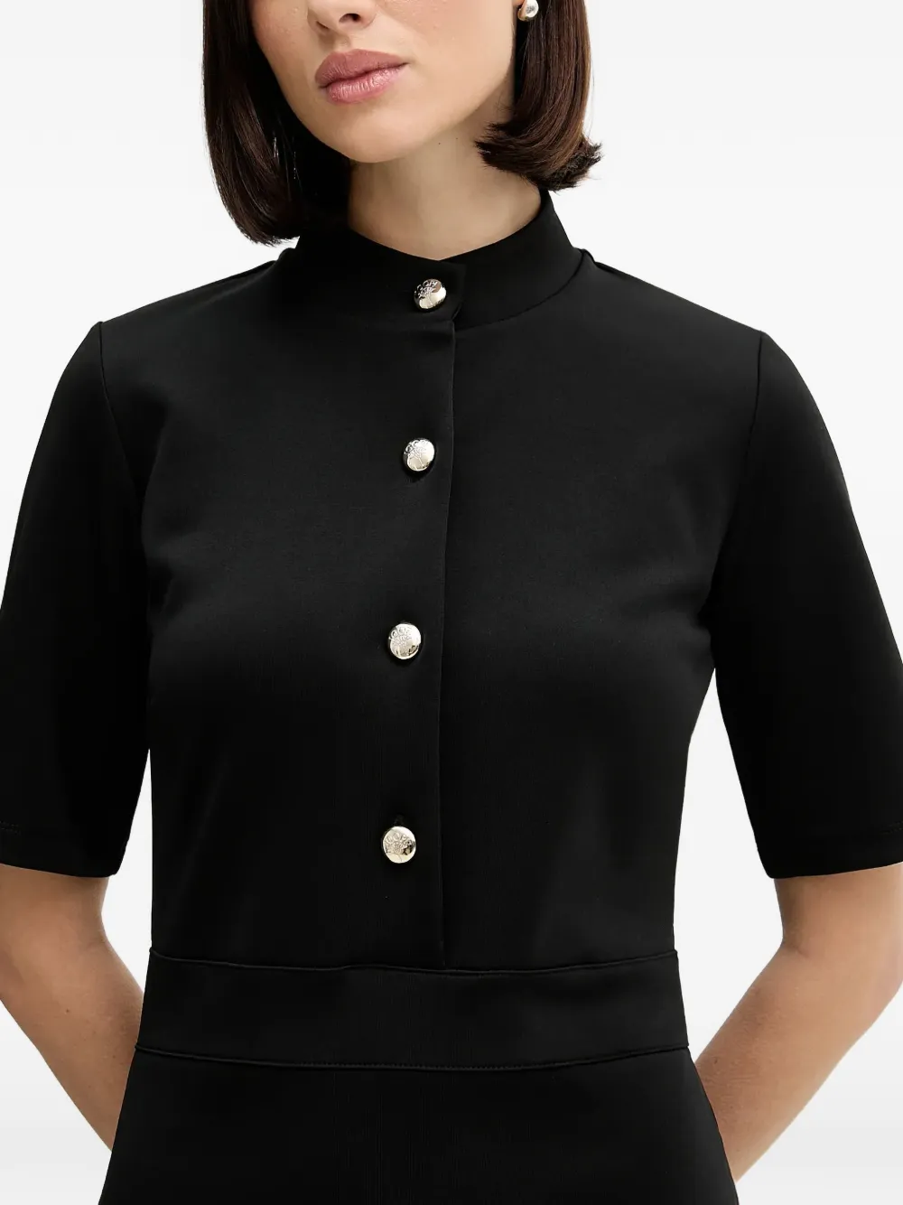 Черная рубашка с застежкой на пуговицы, коротким рукавом, высоким воротником и боковым карманом
