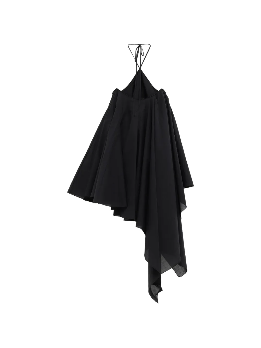 Черное платье на шее с завязками, драпировкой, присборенными деталями и асимметричным подолом