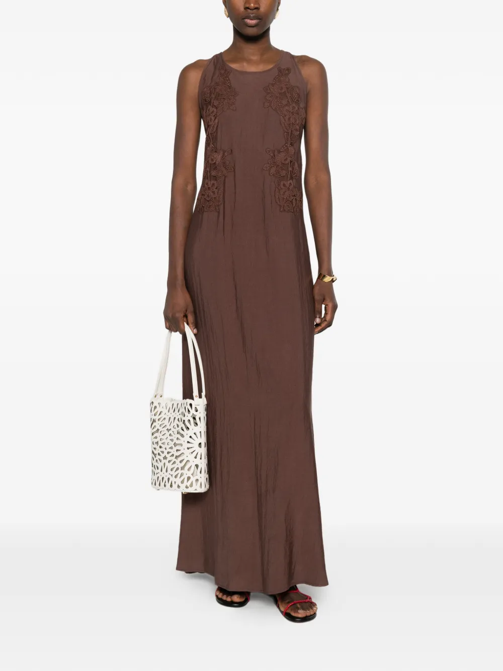 Вышитое макси-платье Ermanno Firenze, коричневый
