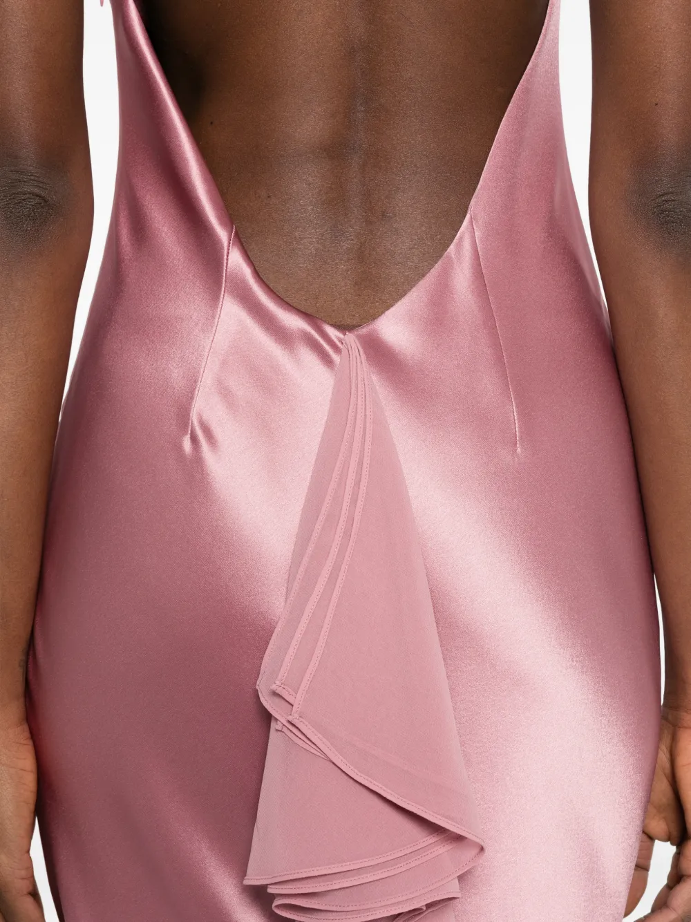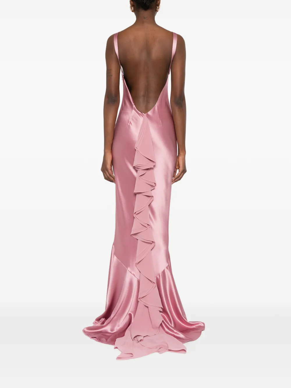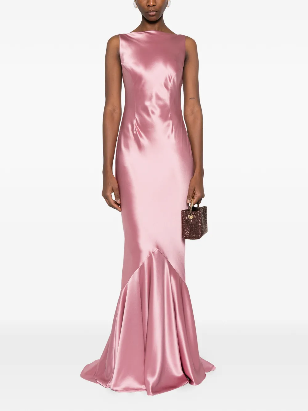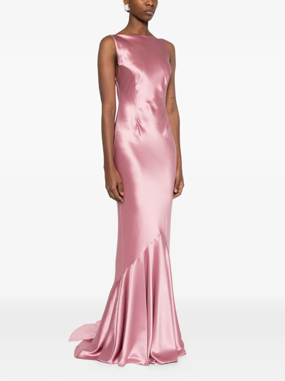 Розовое платье с расклешенным подолом, без рукавов, с открытой спиной и прилегающей талией