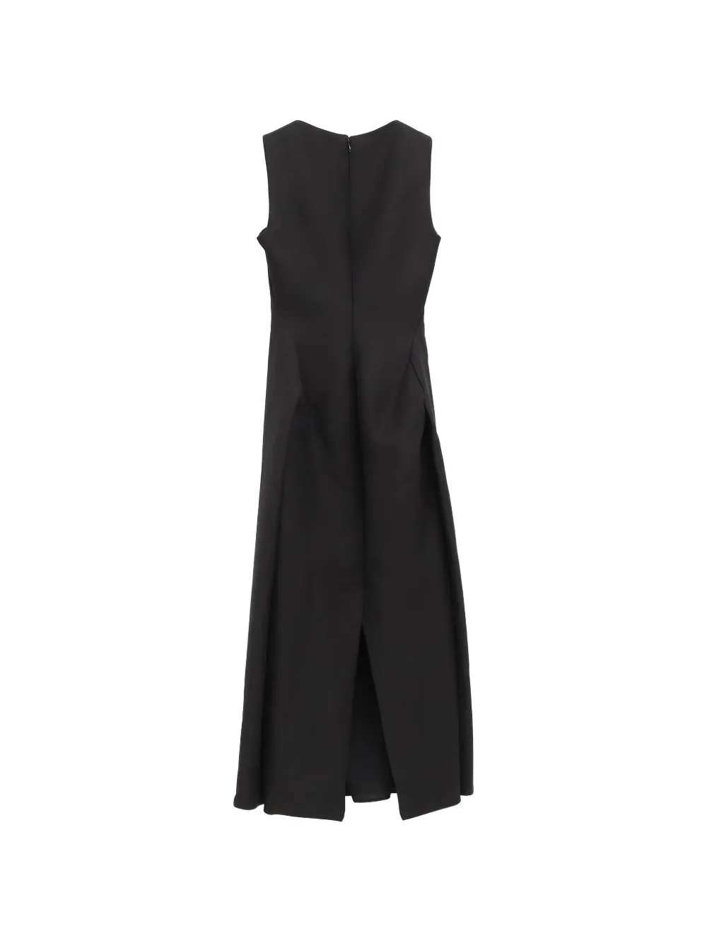 Черное платье с квадратным вырезом, без рукавов, застежкой-молнией сзади и разрезом сзади