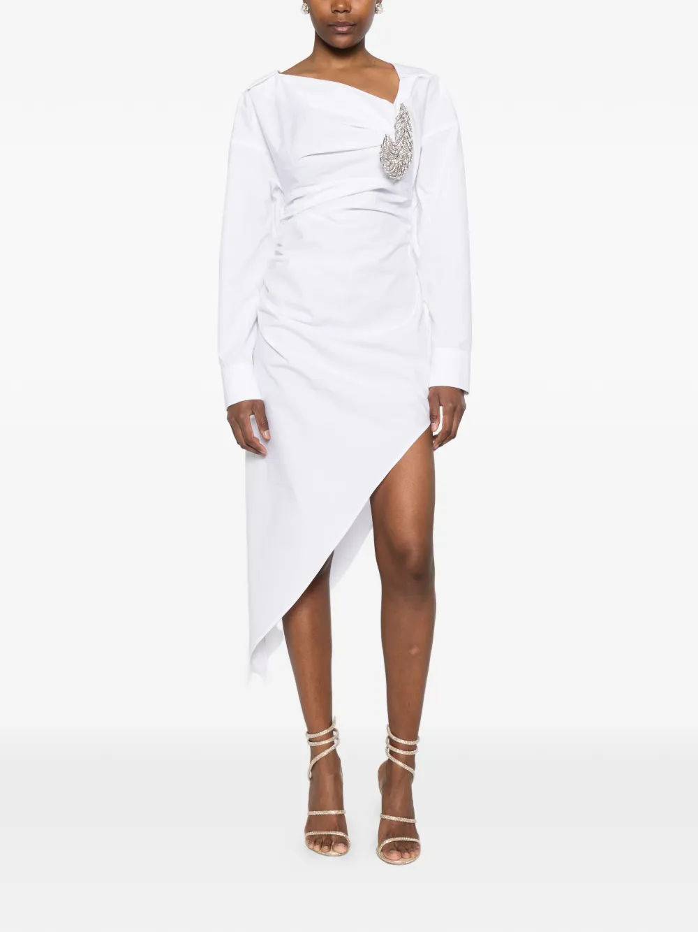 Асимметричное платье с брошью Giuseppe Di Morabito, белый