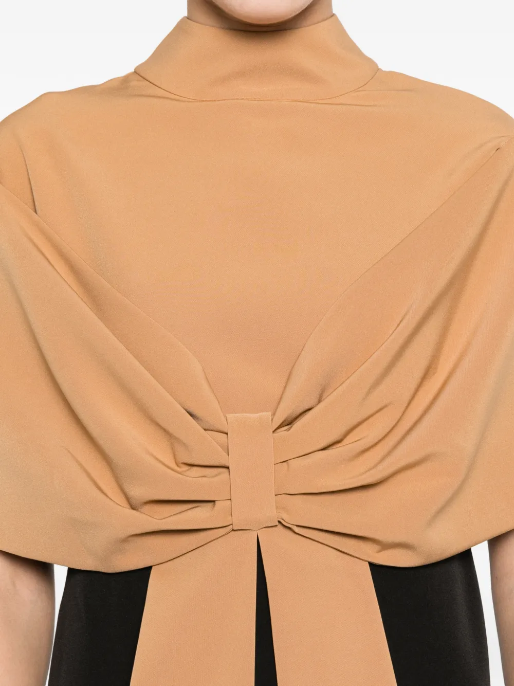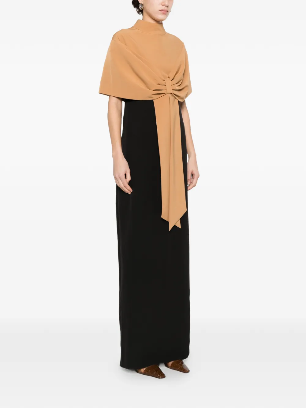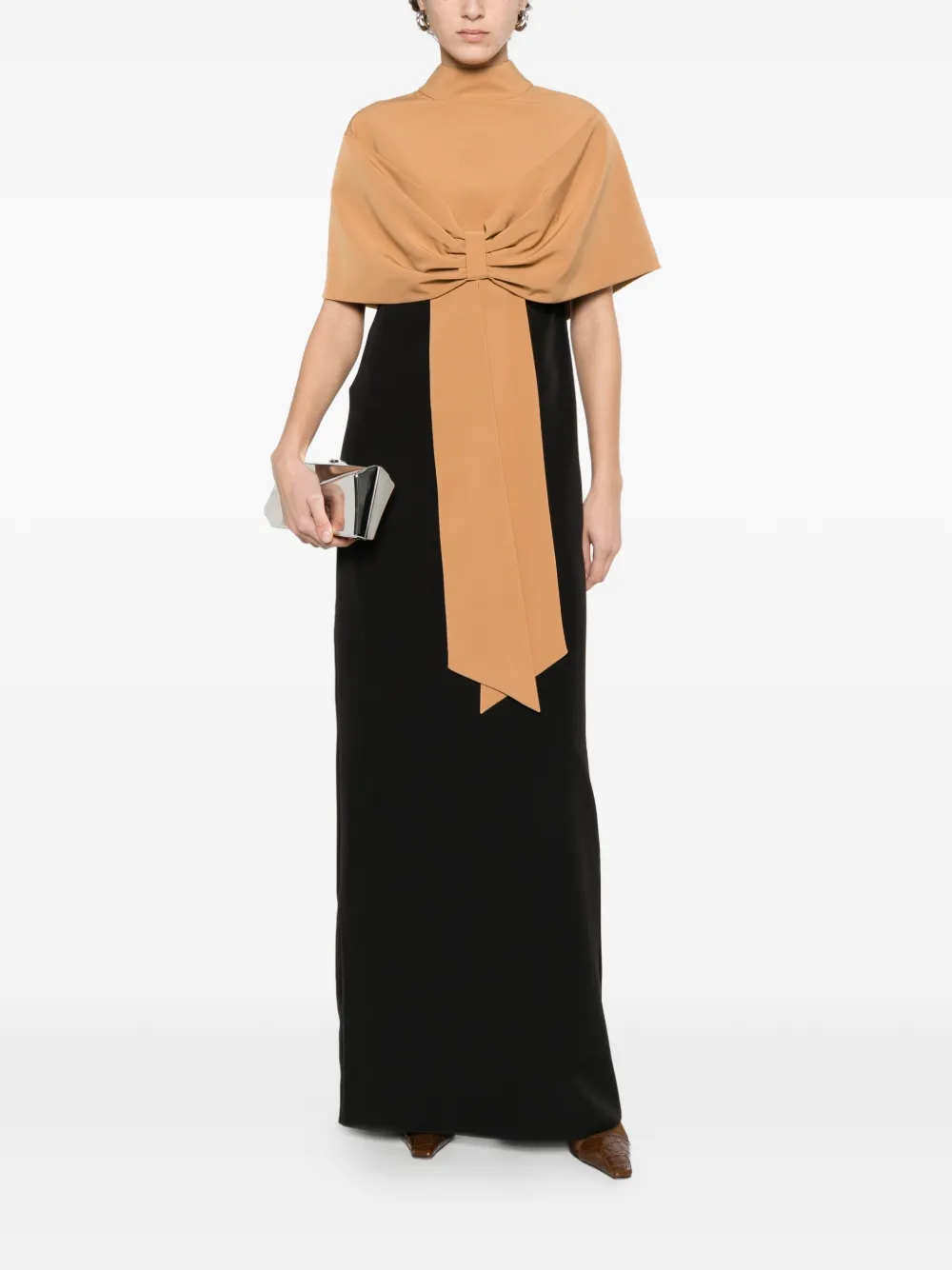 Черно-коричневый двухцветный дизайн, бант, высокий воротник, приталенный силуэт