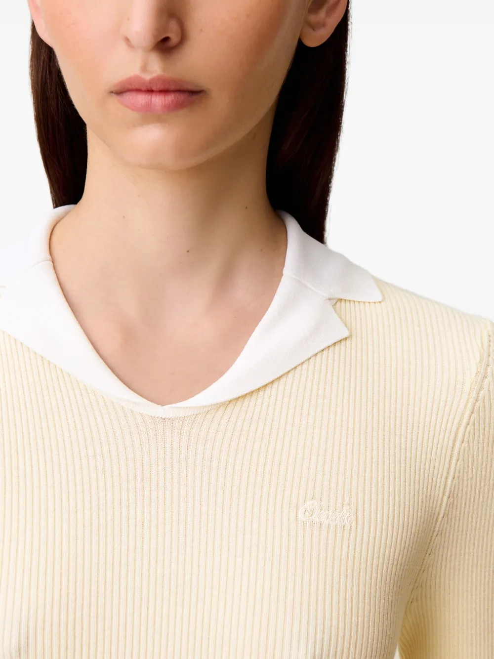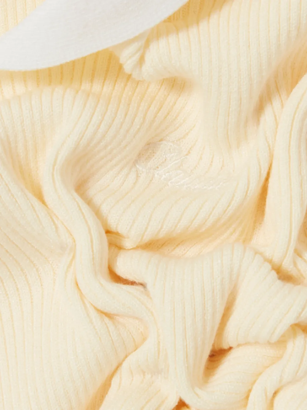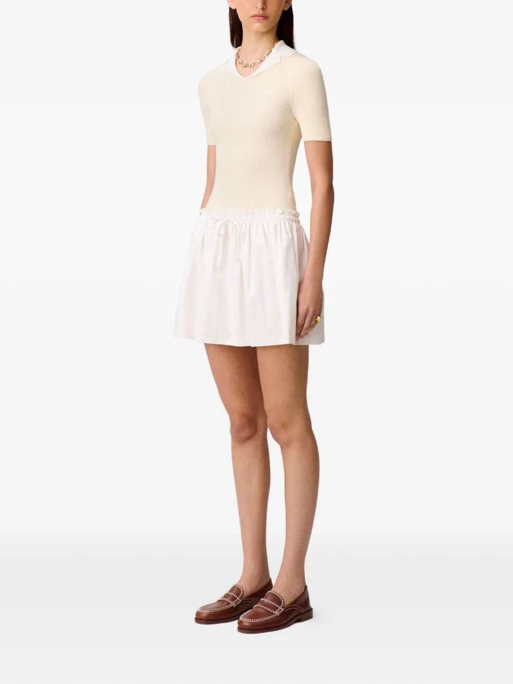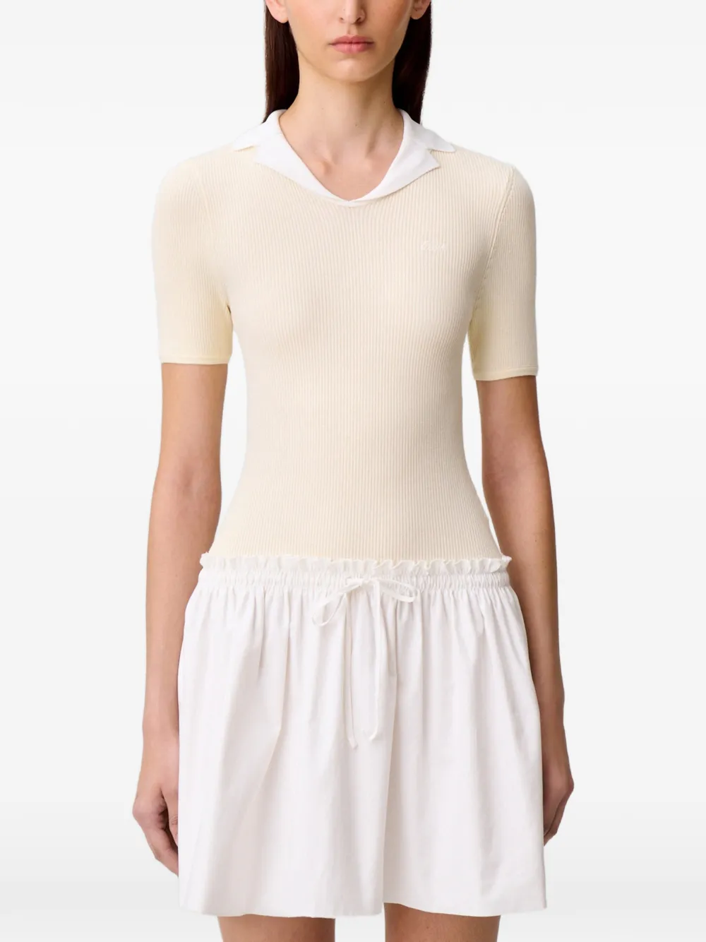 Ванильная рубашка-поло из рубчатого трикотажа с короткими рукавами и кулиской